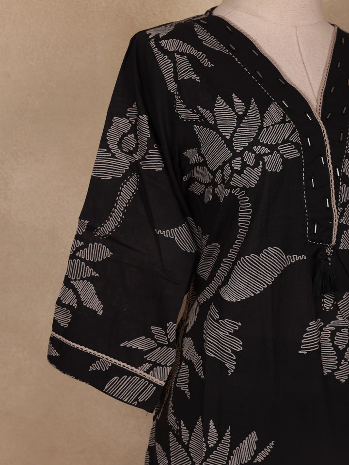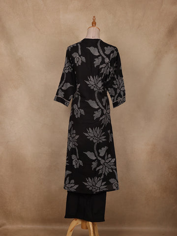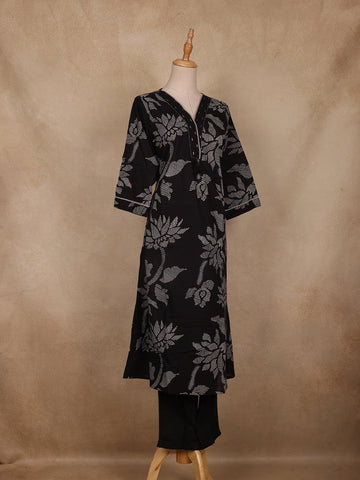 Black Floral Design Cotton Salwar Suit