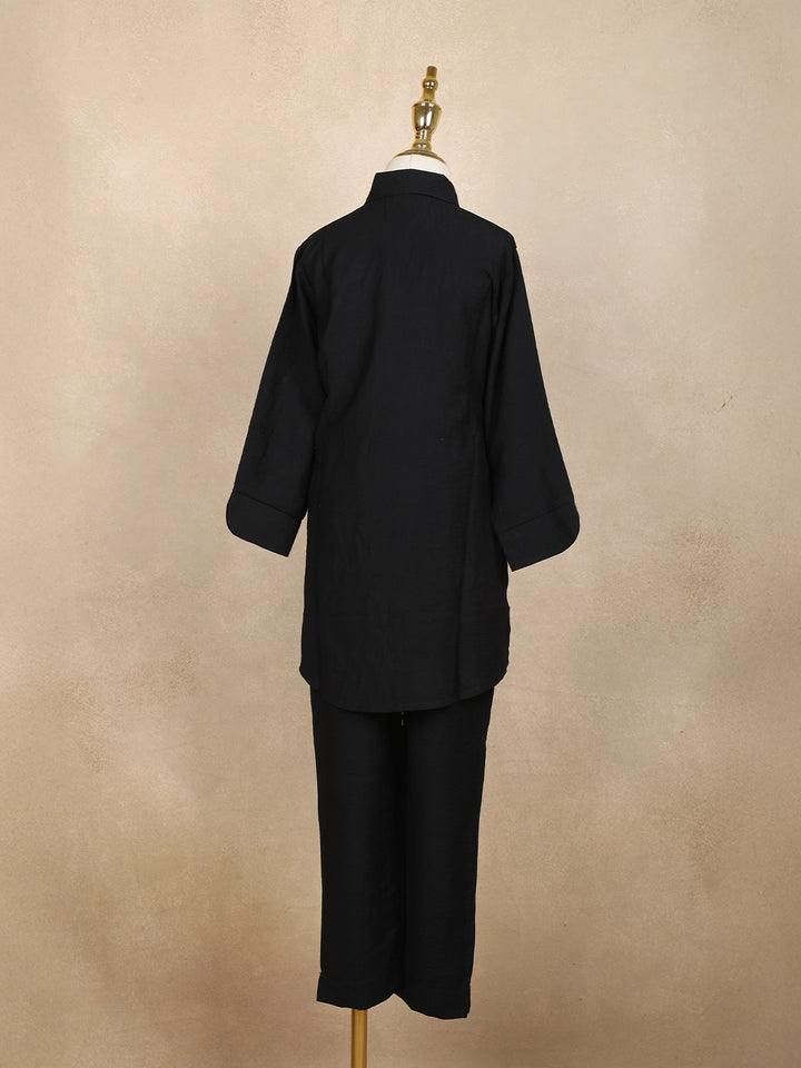 Black Floral Embroidered Cotton Kids Co-ord Set