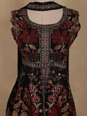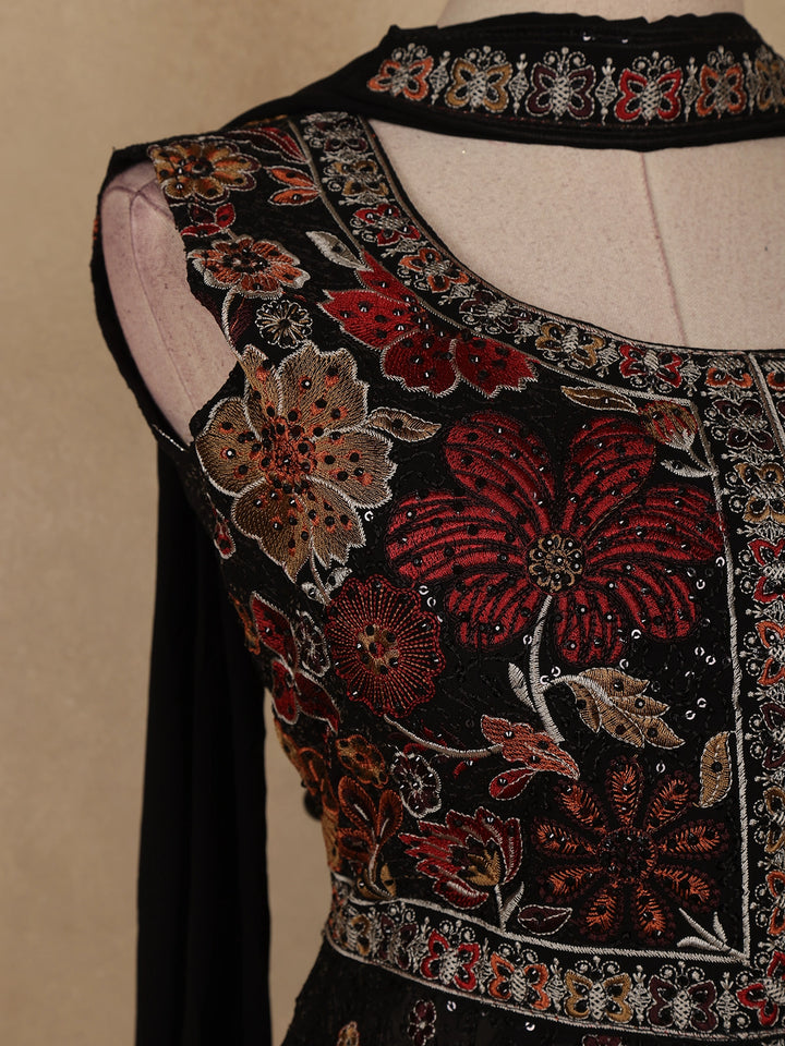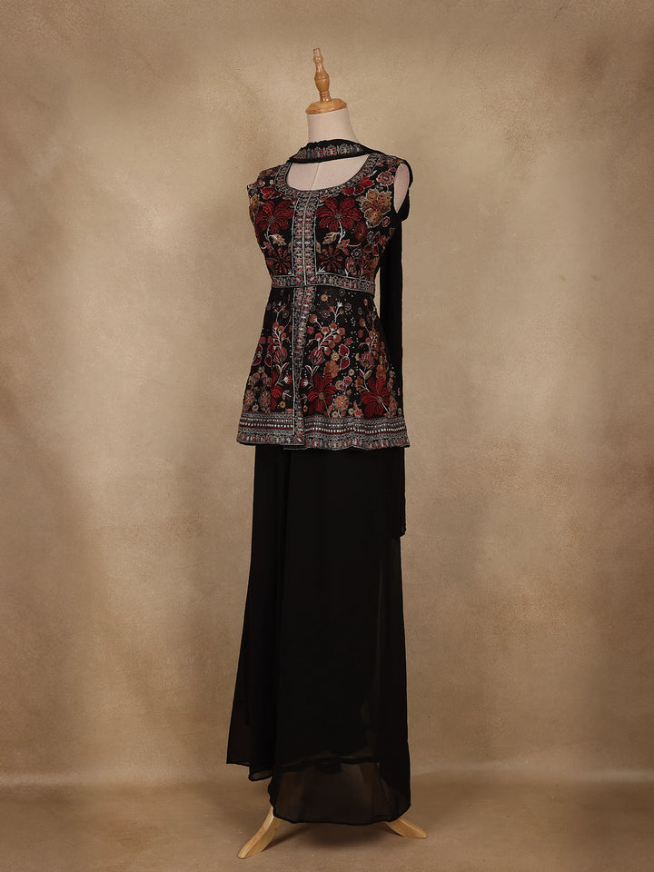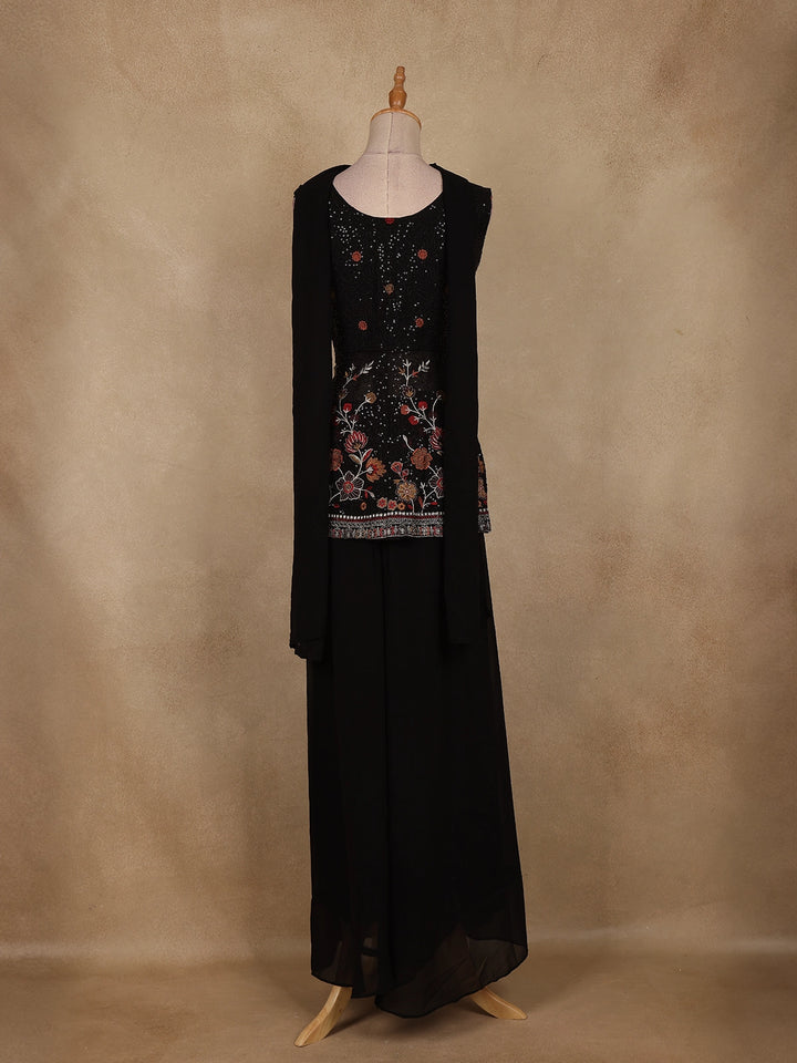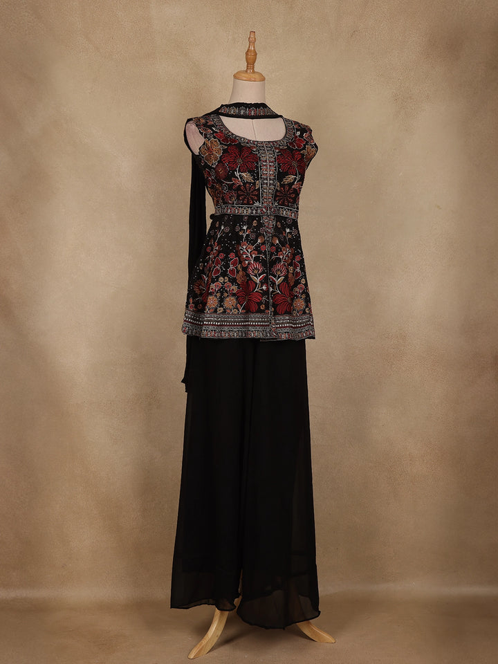 Black Floral Embroidered Georgette Palazzo Suit with Dupatta