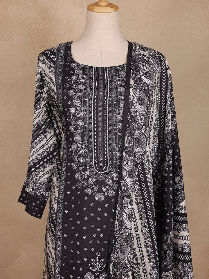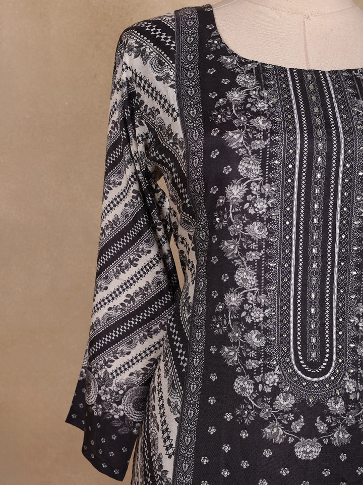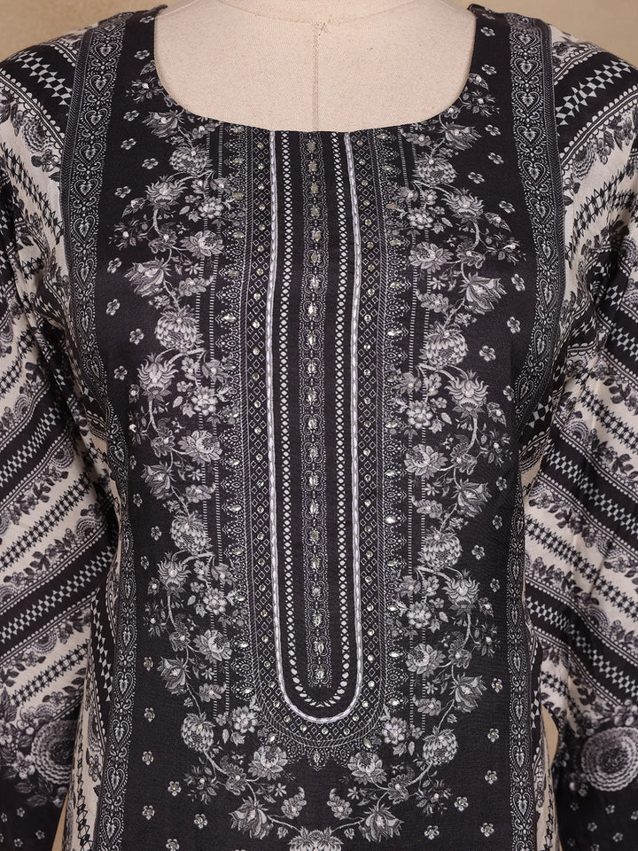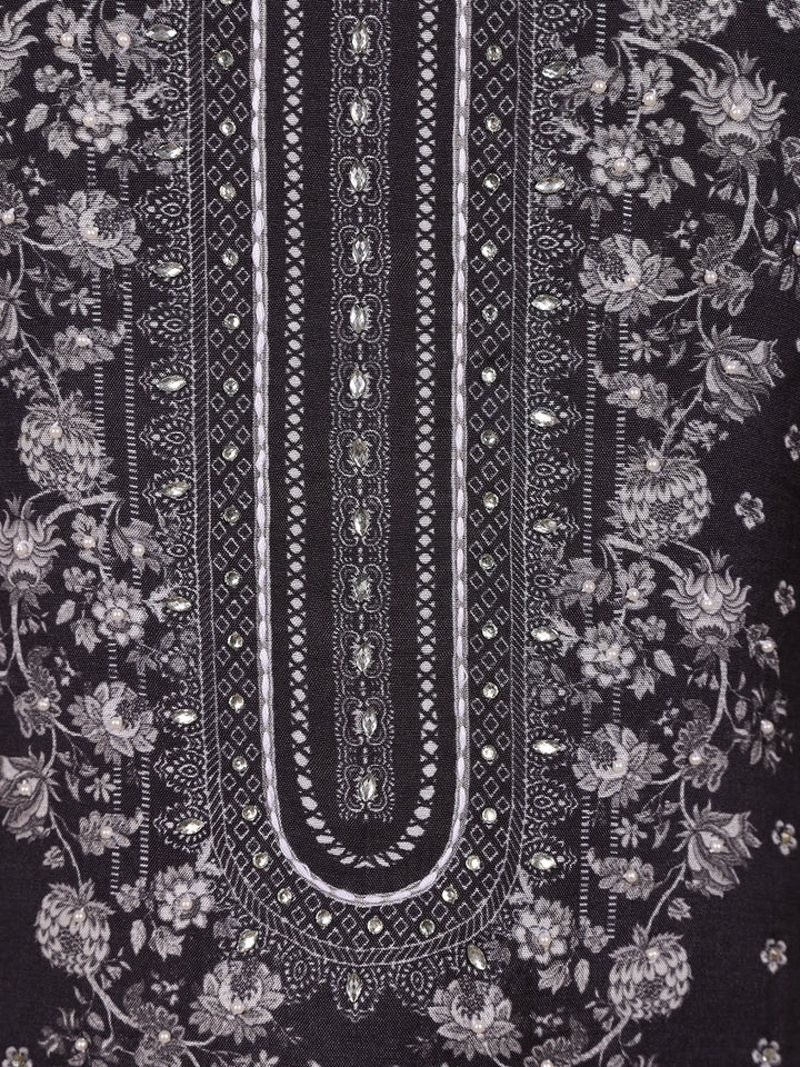 Black Floral Print Design Cotton Straight Cut Salwar Suit