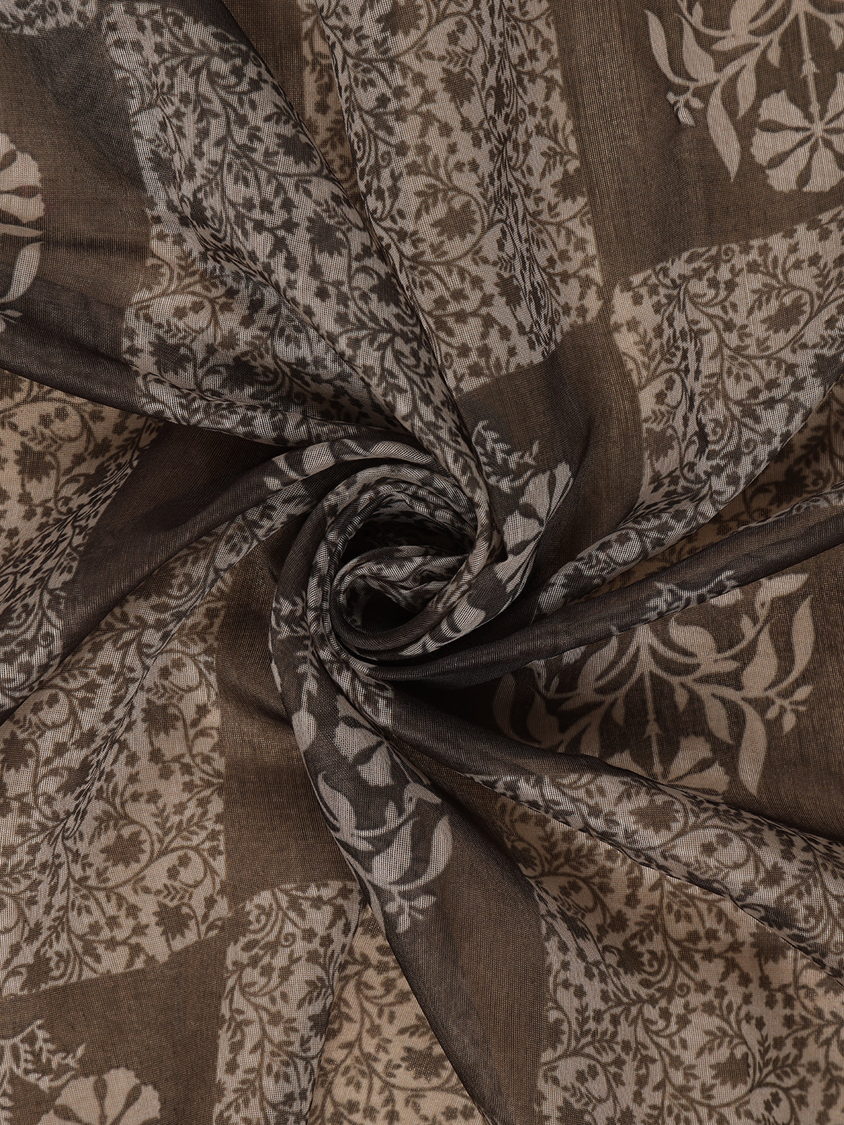 This saree features an elegant black base highlighted with intricate floral prints that create a graceful and timeless appeal. Crafted in soft Chanderi cotton, it offers a light and airy drape that feels comfortable to wear throughout the day while still maintaining a refined, traditional look. The subtle sheen of the fabric adds a touch of sophistication without being overly bold.