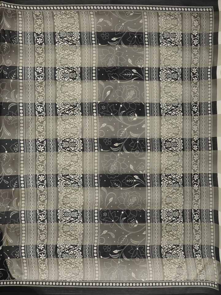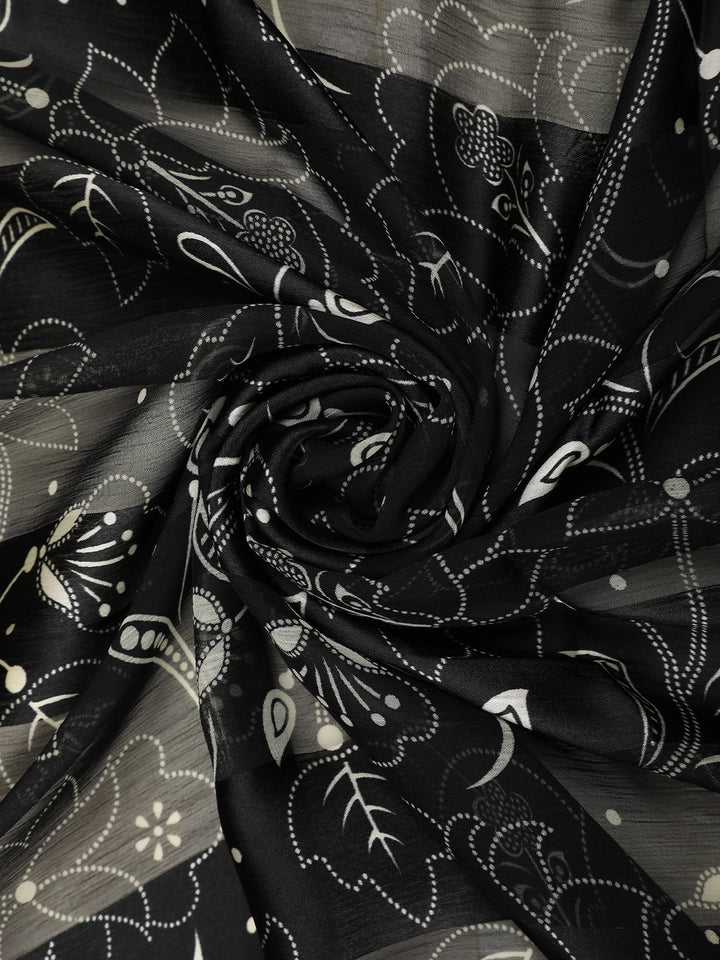 Elegant and effortlessly stylish, this Black and White Soft Chiffon Saree brings together tradition and modern charm. The saree features an all-over floral printed design in subtle white tones against a rich black base, giving it a graceful and classic look. The lightweight chiffon drapes beautifully, adding fluidity and comfort for all-day wear.