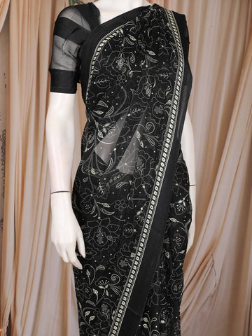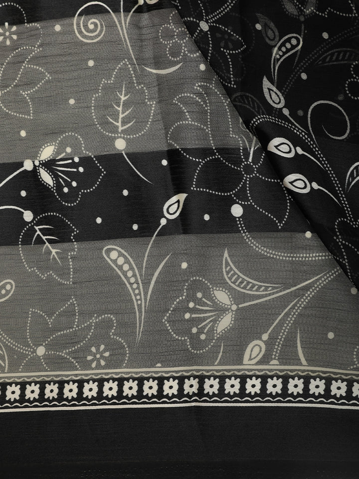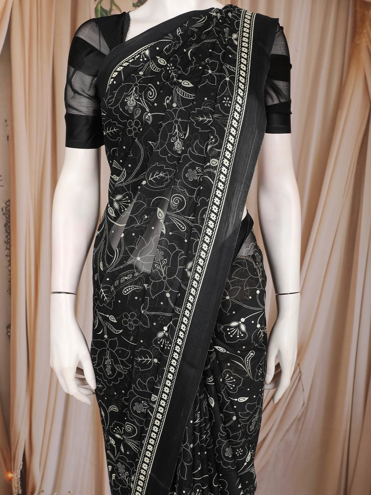 Black Floral Printed Chiffon Saree