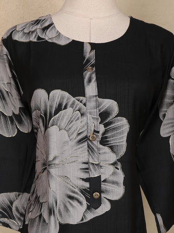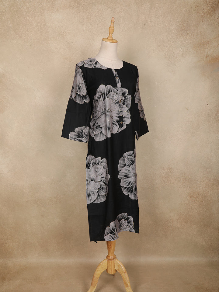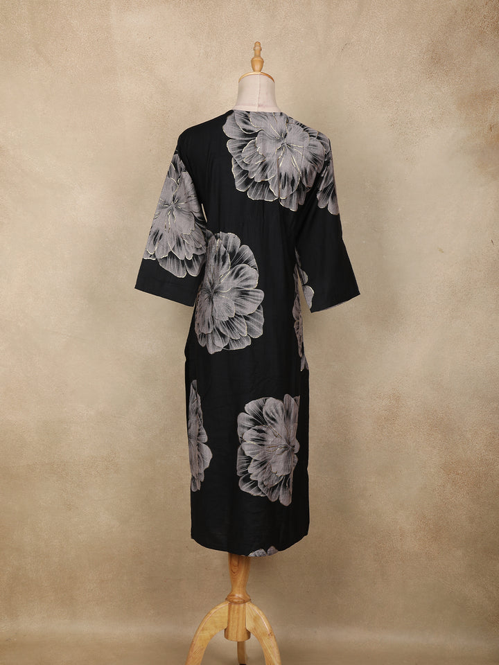 Black Floral Printed Cotton Kurti