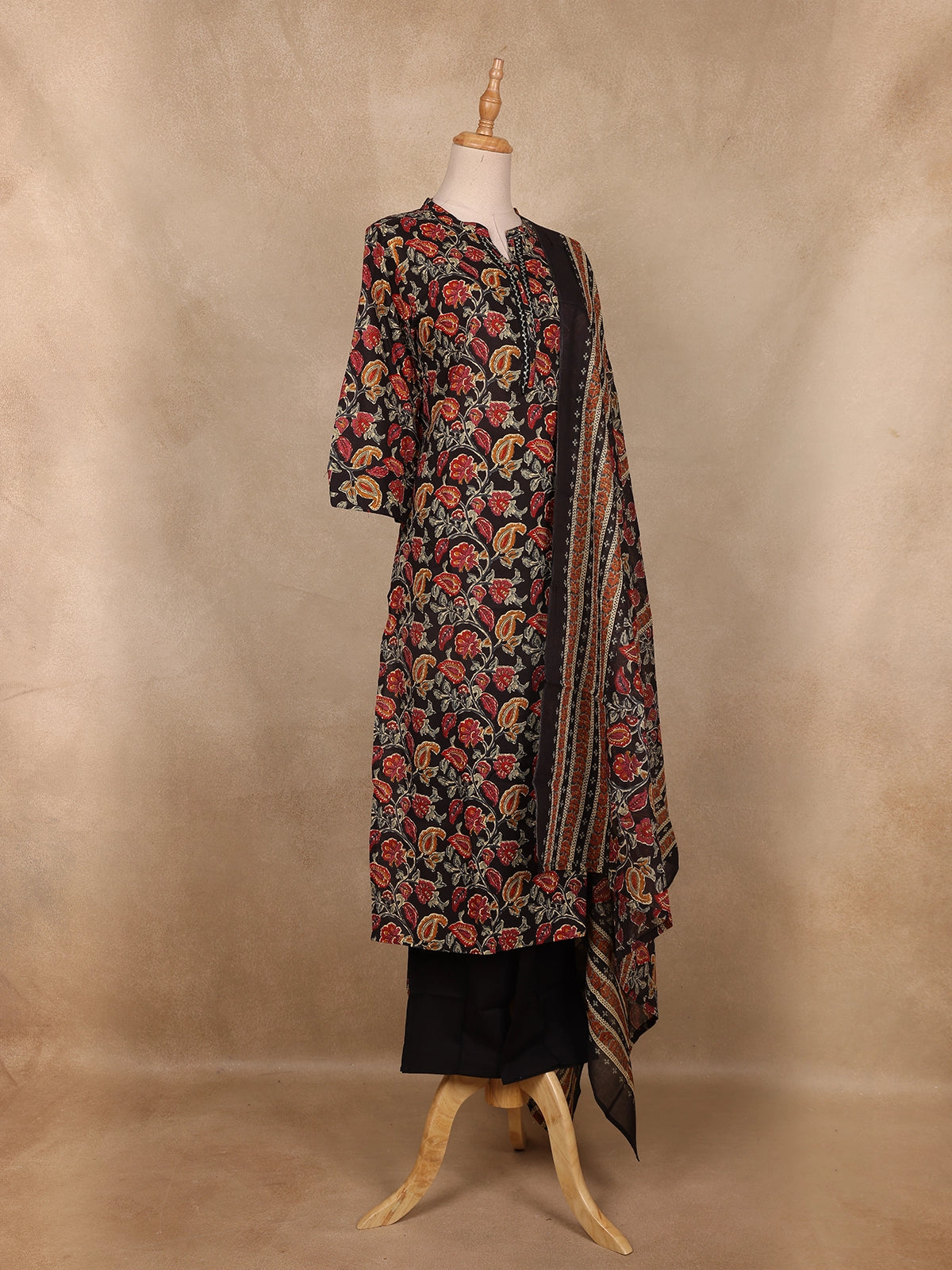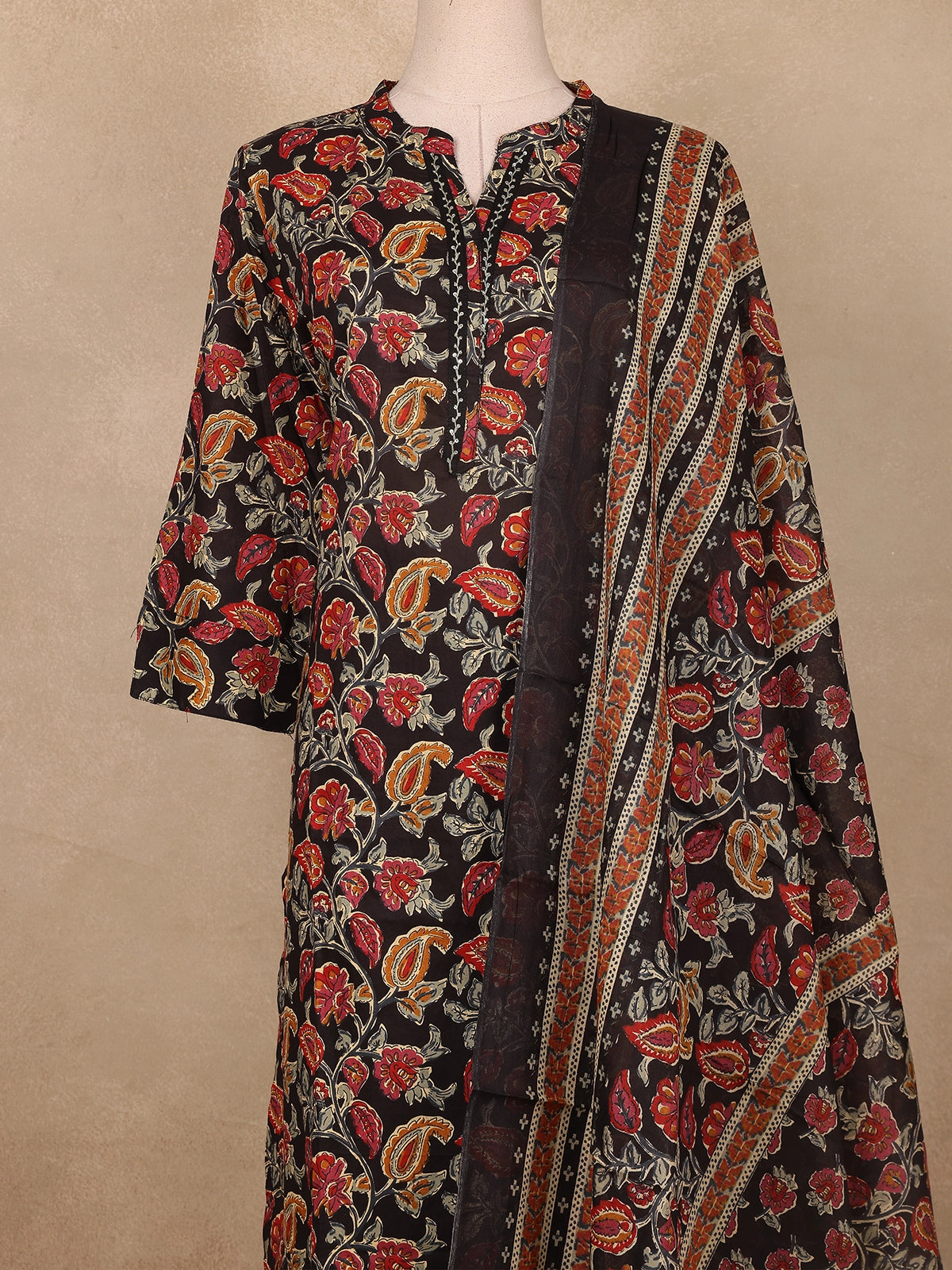 Black Floral Printed Cotton Salwar Suit with Dupatta