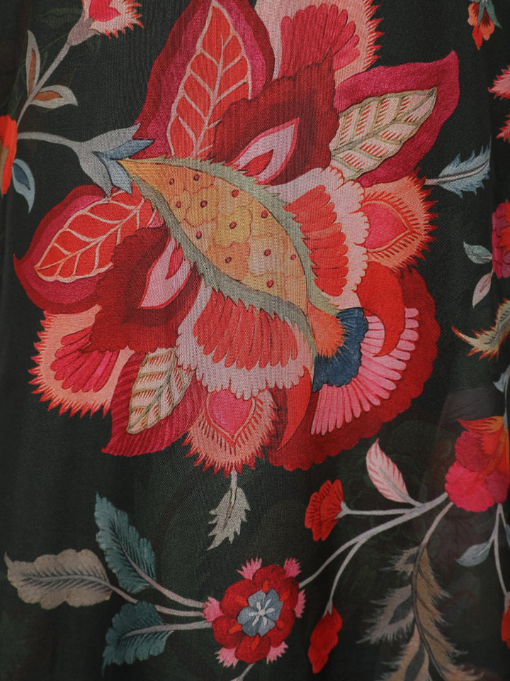 Classic, bold, and beautifully festive — this Black Lehenga Set blends rich color with intricate detailing for a standout celebration look. The flowing organza lehenga features artistic multi-floral prints that create a dramatic yet elegant aesthetic.