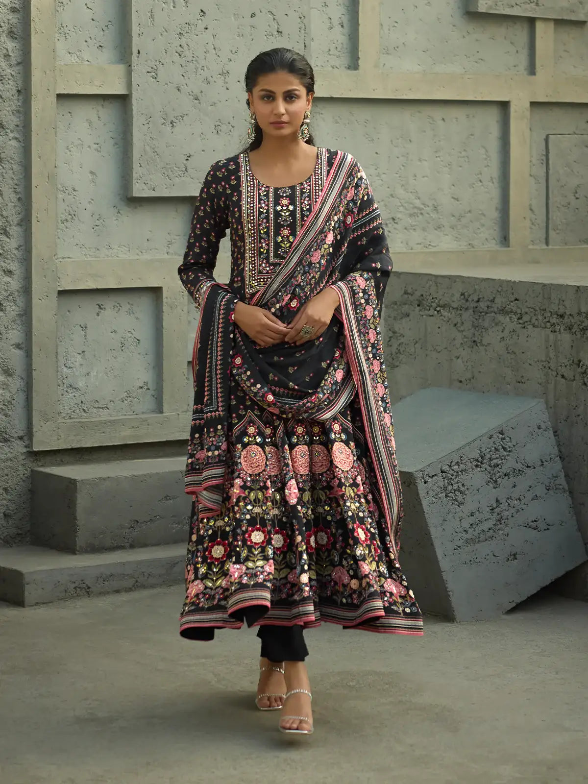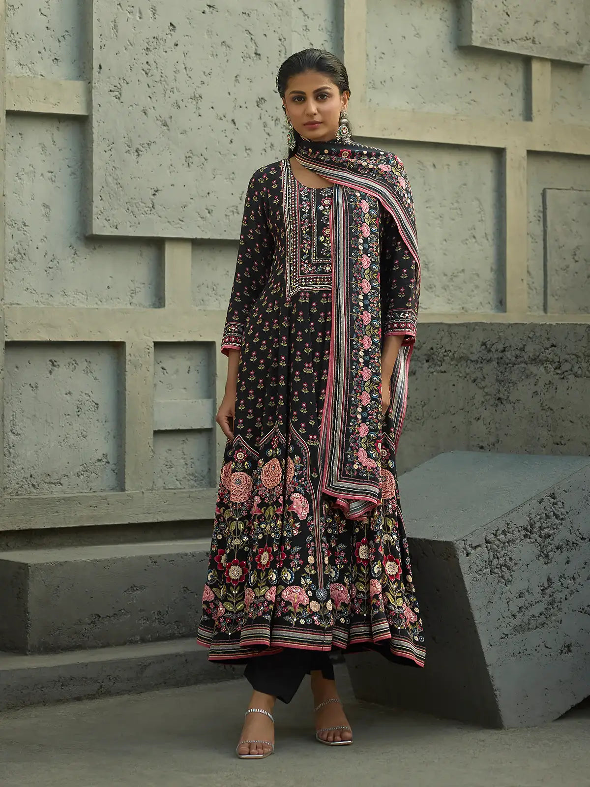 Make an impression with timeless elegance in this Black Floral Printed Salwar Suit, designed for the modern woman who values comfort with style. Crafted from smooth synthetic fabric, this ensemble features a stunning floral print that beautifully contrasts against the rich black base, lending a bold yet graceful aesthetic.