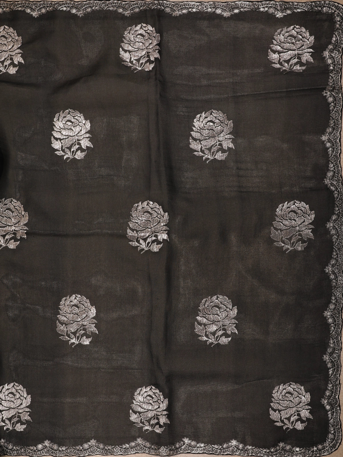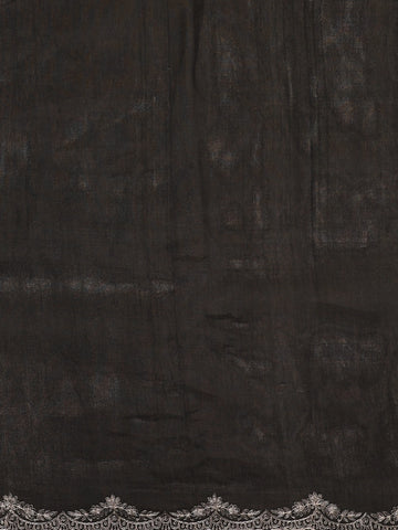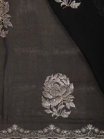 Black Floral Thread Embroidered Design Tussar Designer Saree