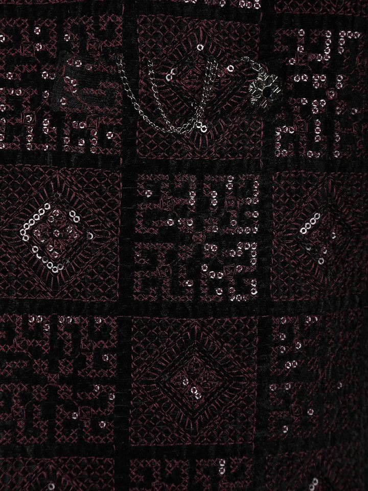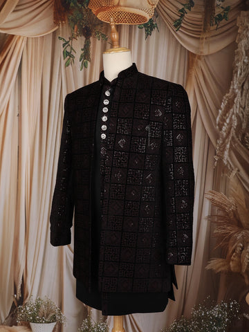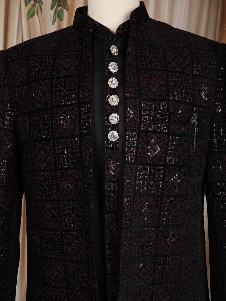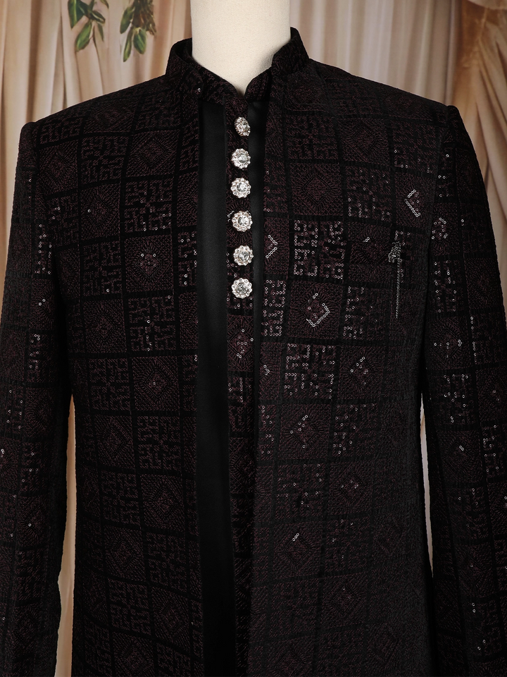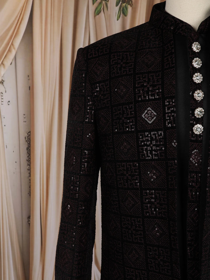 Black Geometric Sequins Embroidered Indo-Western Velvet Sherwani