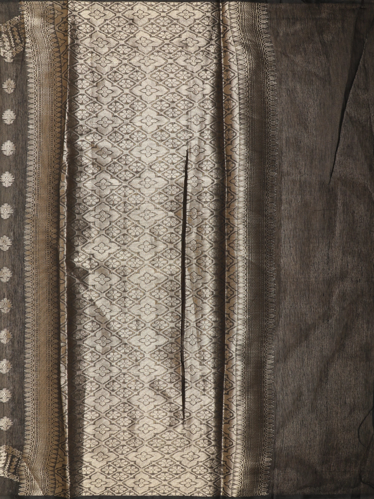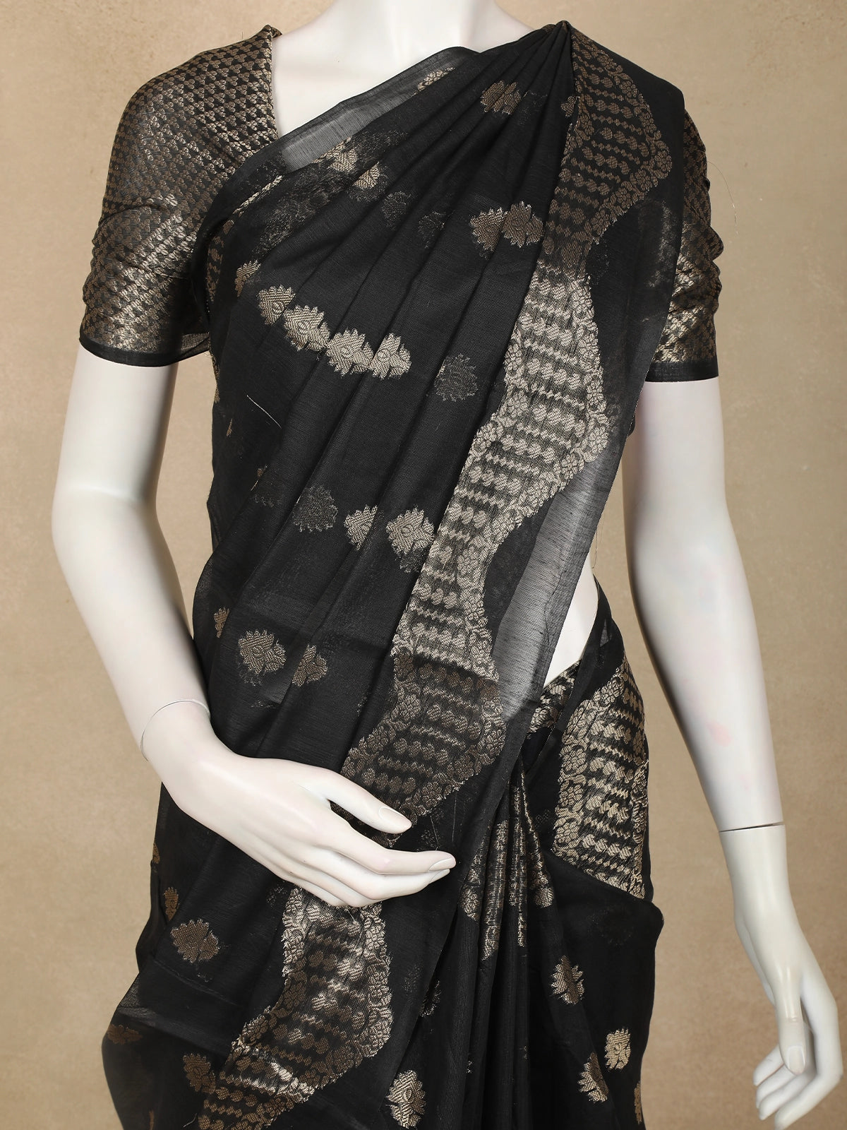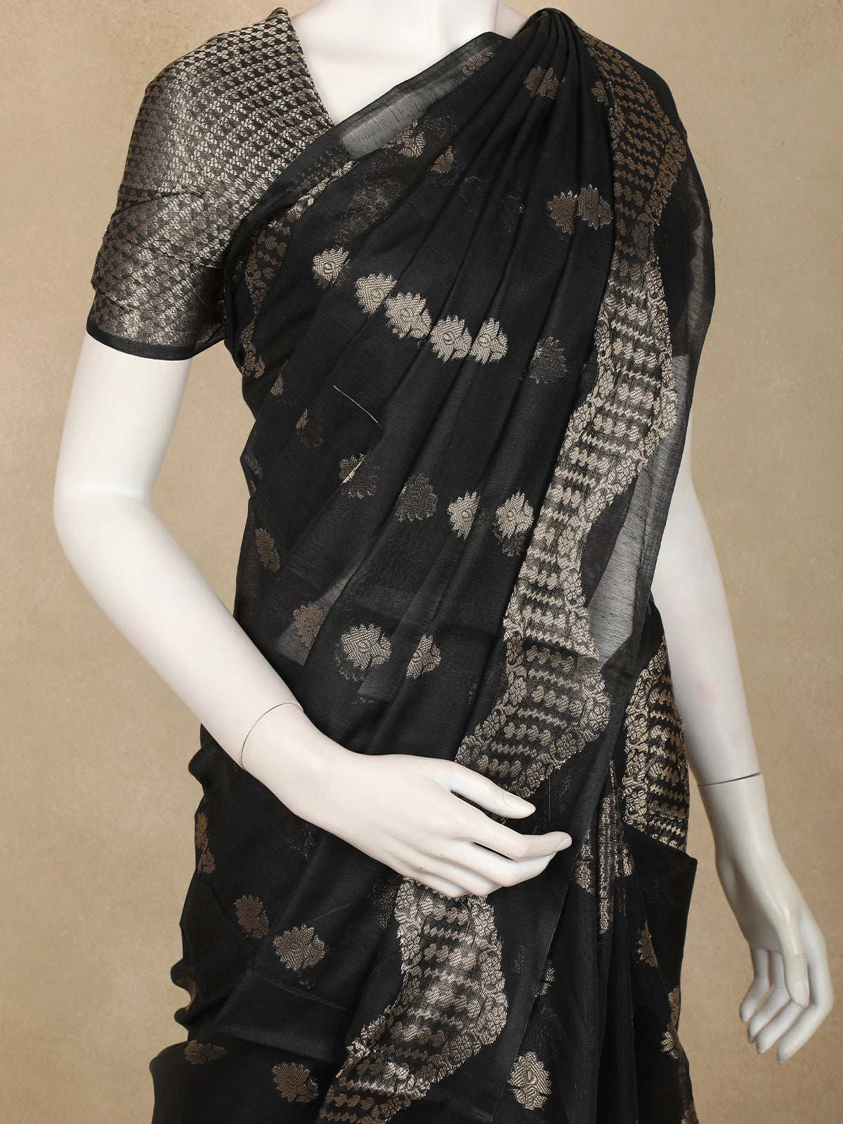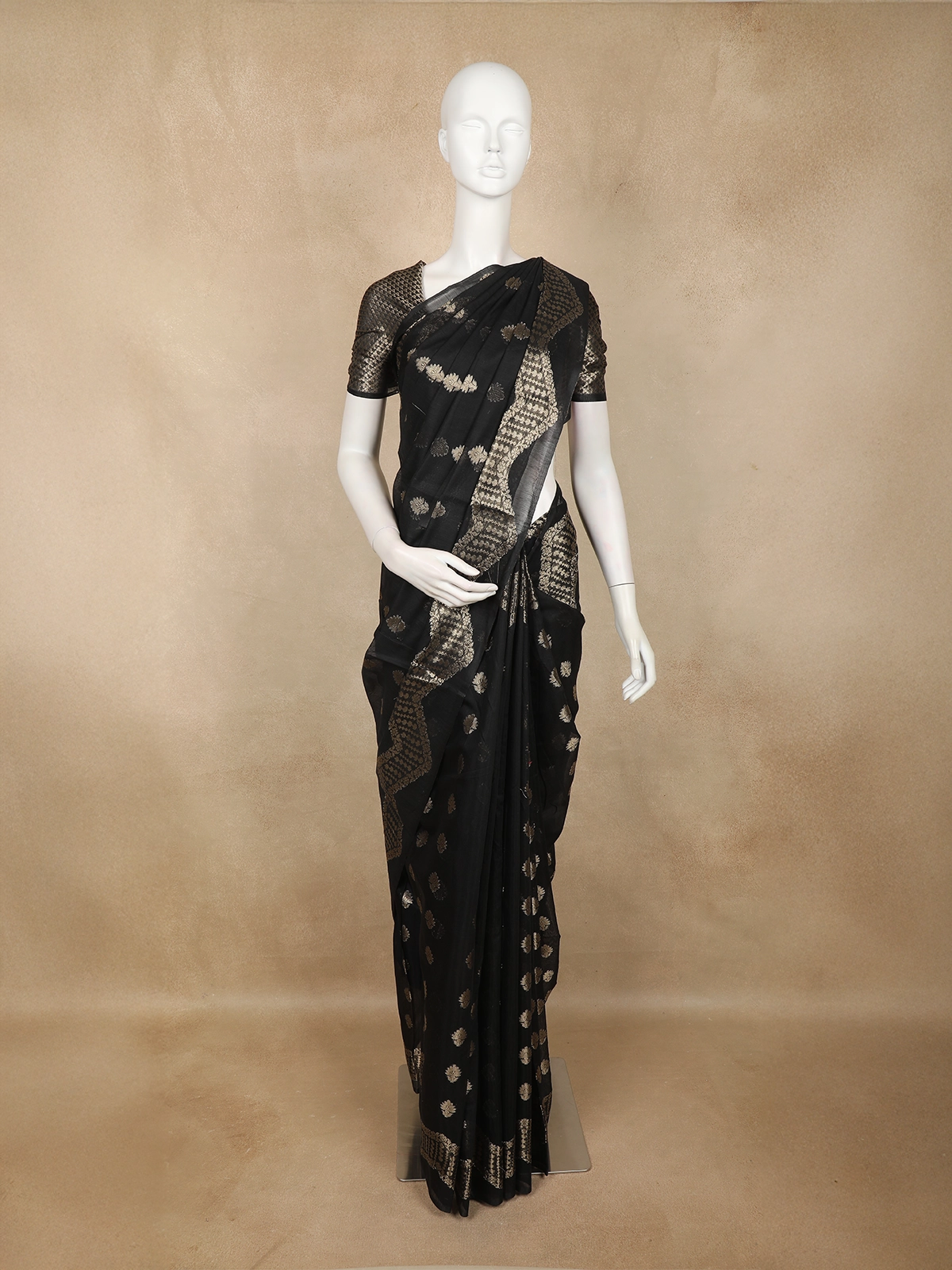 Black Gold Zari Butta Design Semi Banarasi Saree with Intricate Zari Border