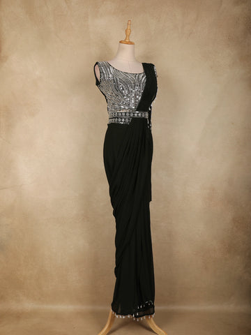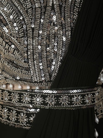 Black Heavy Sequins and Beads Embroidered Design Georgette Ready To Wear Saree with Belt