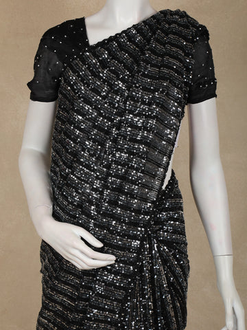 Black Heavy Sequins Embroidered Design Net Designer Saree
