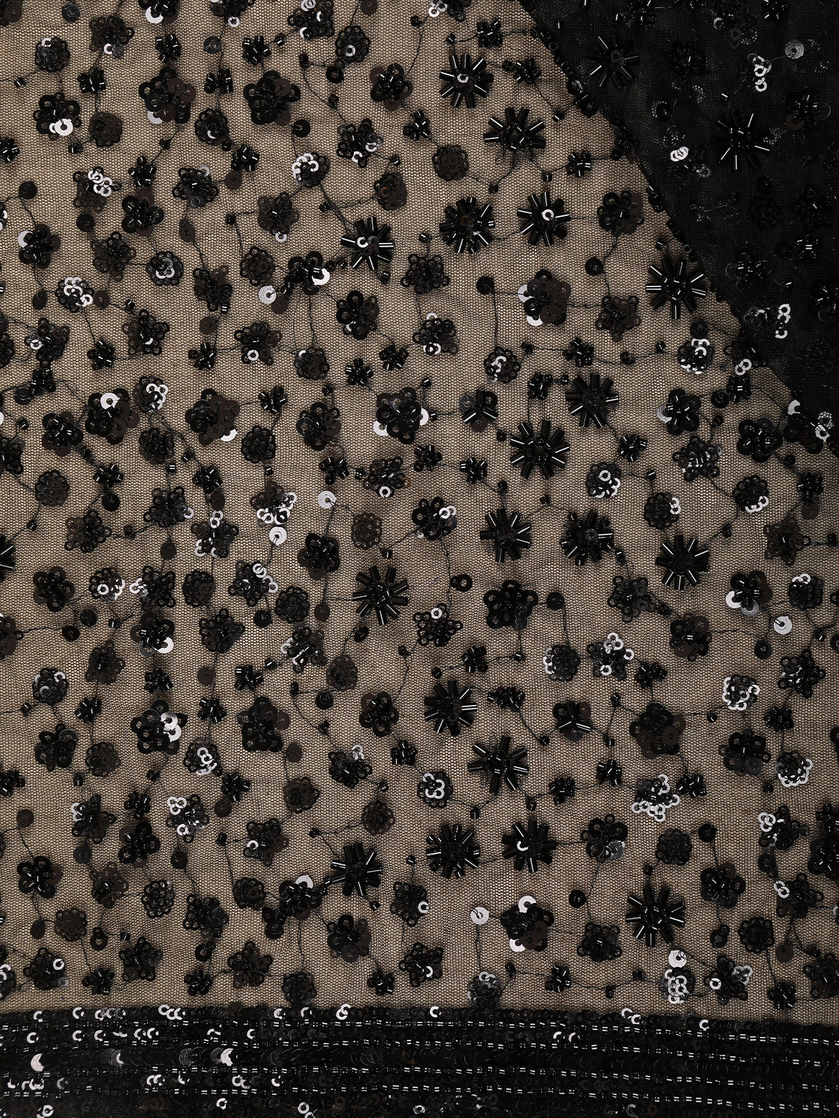 Make a bold and glamorous statement with this Black Heavy Sequins Embroidered Net Saree, designed to exude elegance and modern sophistication. Crafted on a sheer net base, the saree is richly adorned with all-over heavy sequins embroidery, creating a dazzling shimmer that catches the light beautifully with every movement.