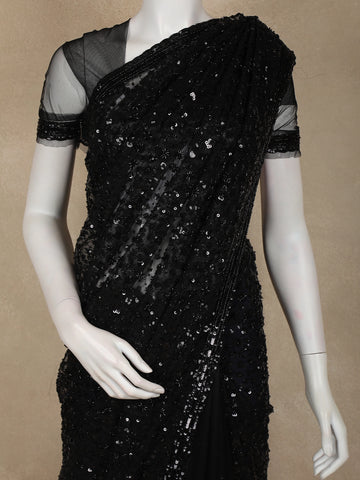 Black Heavy Sequins Embroidered Design Net Designer Saree