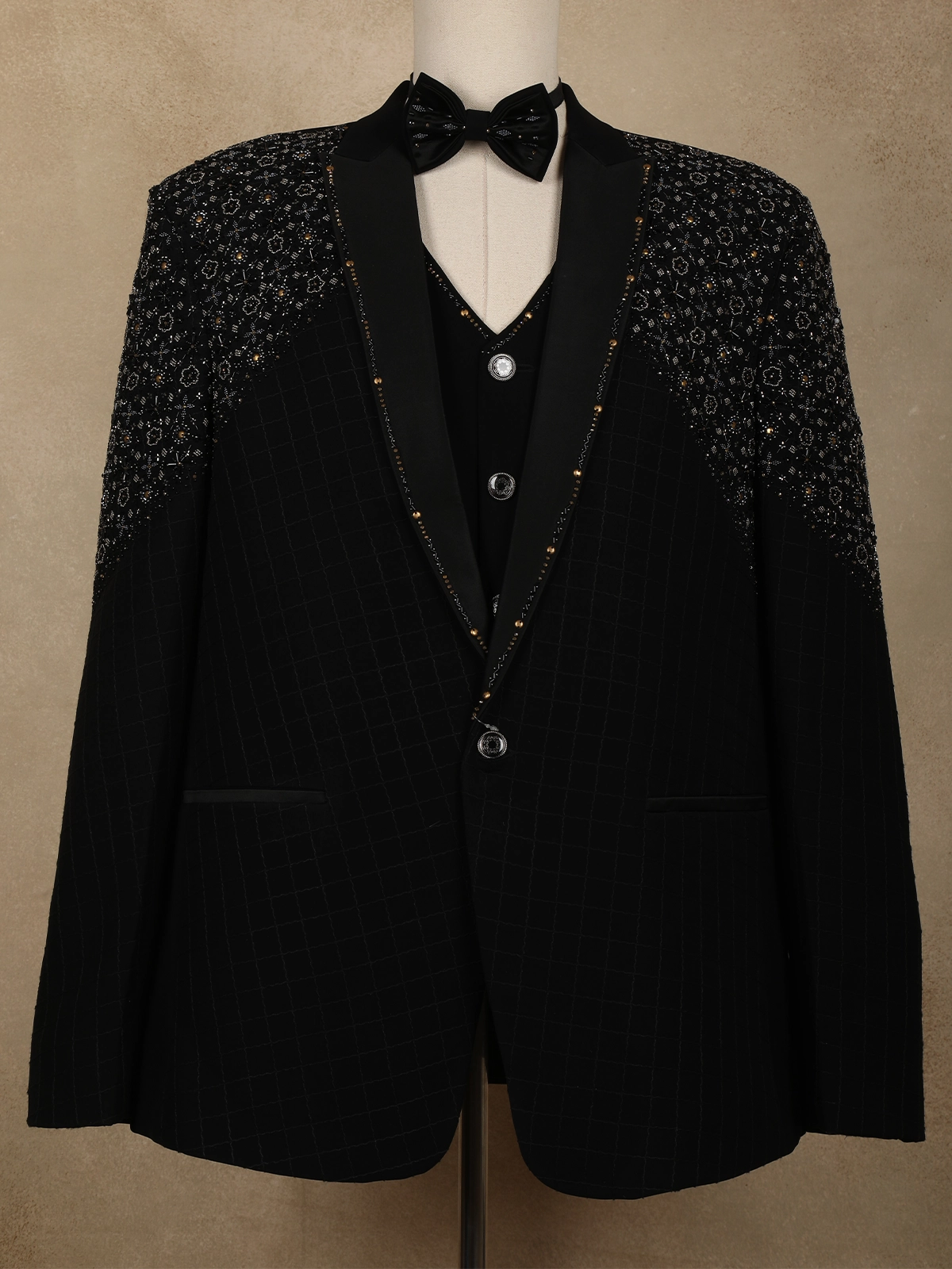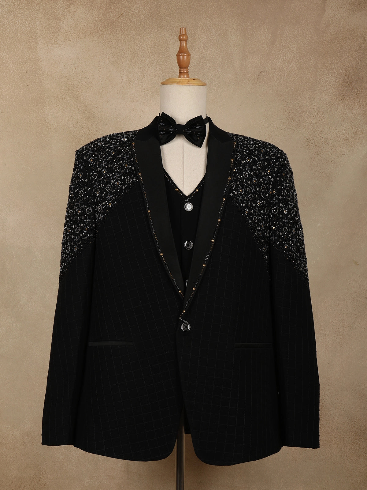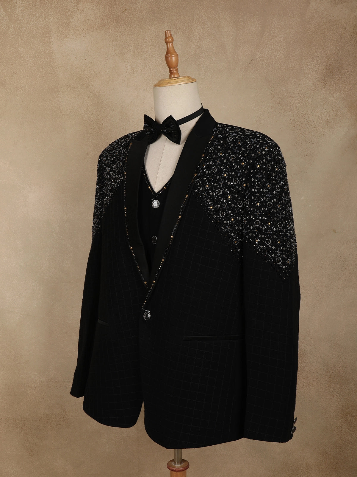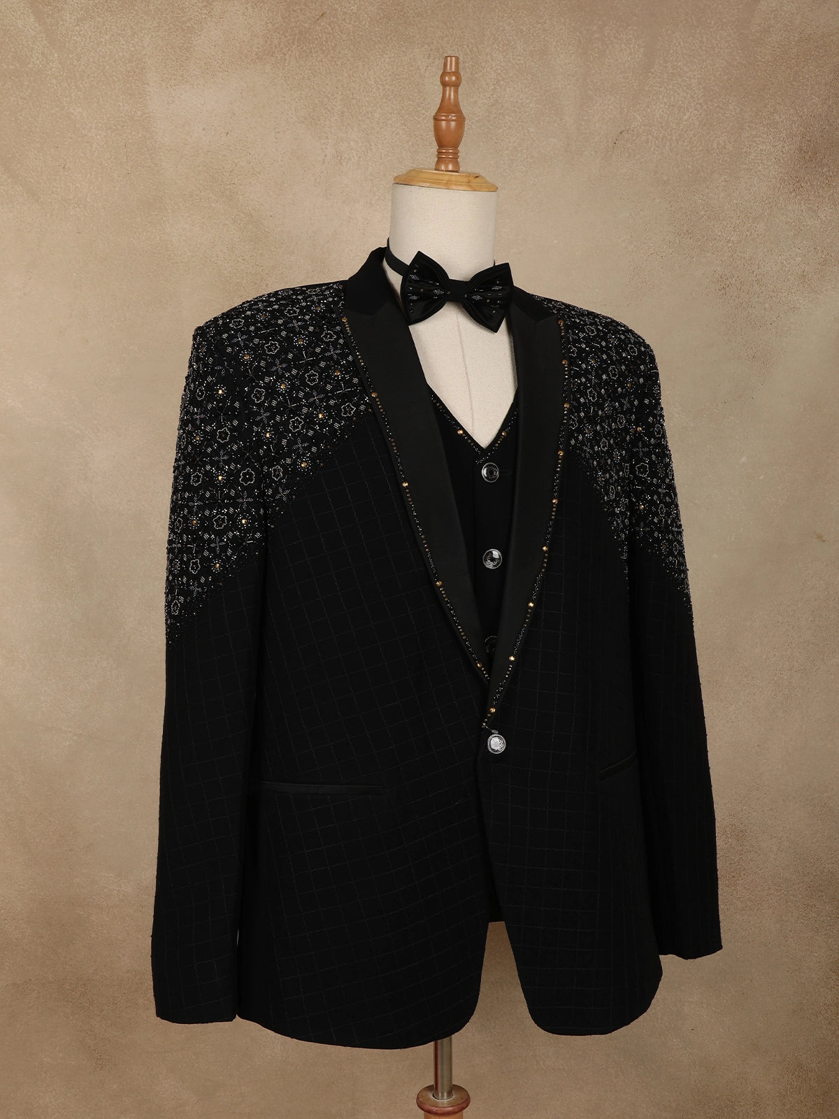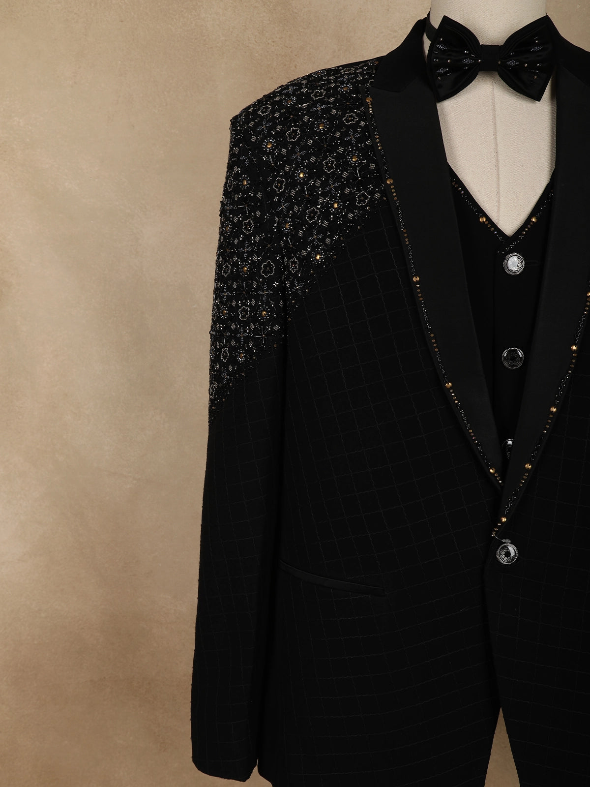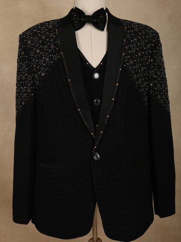 Black Intricate Black Beads Embroidered Design Brocade Men's Suit