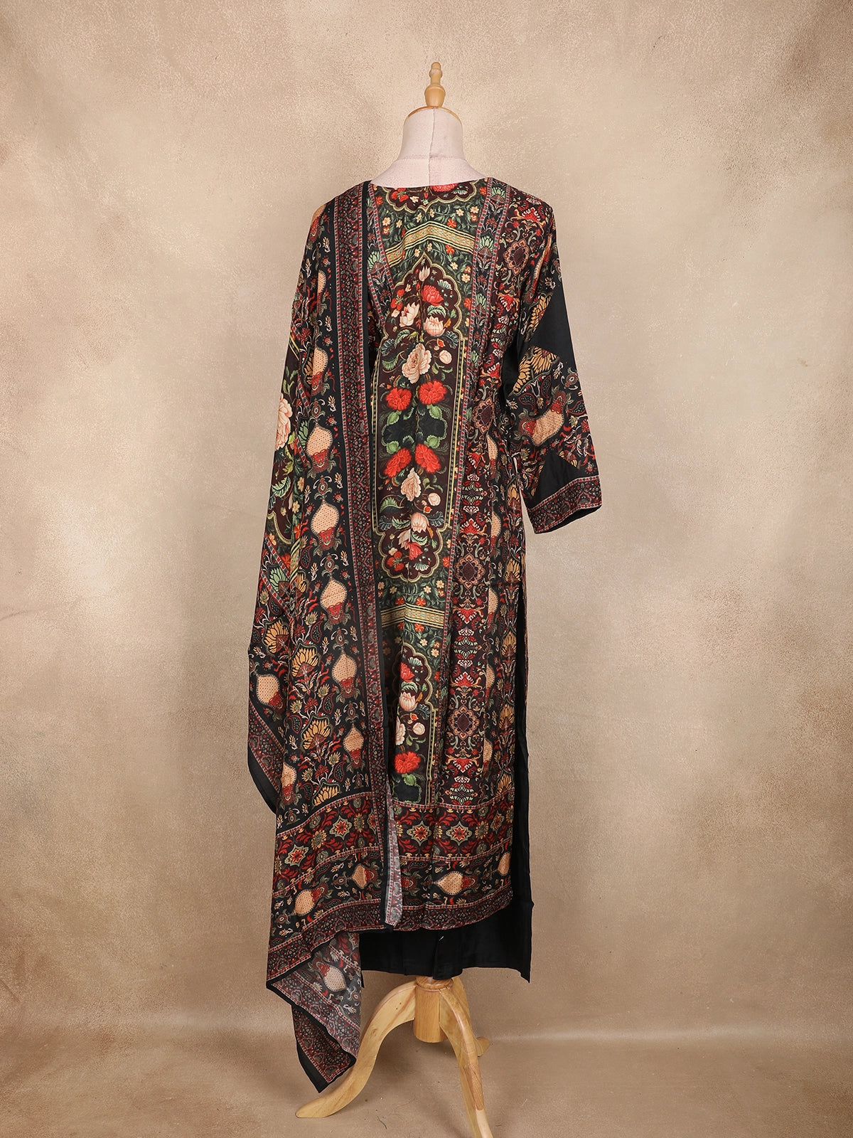 Black Kashmiri Floral Printed Design Crepe Straight Cut Salwar Suit with Dupatta