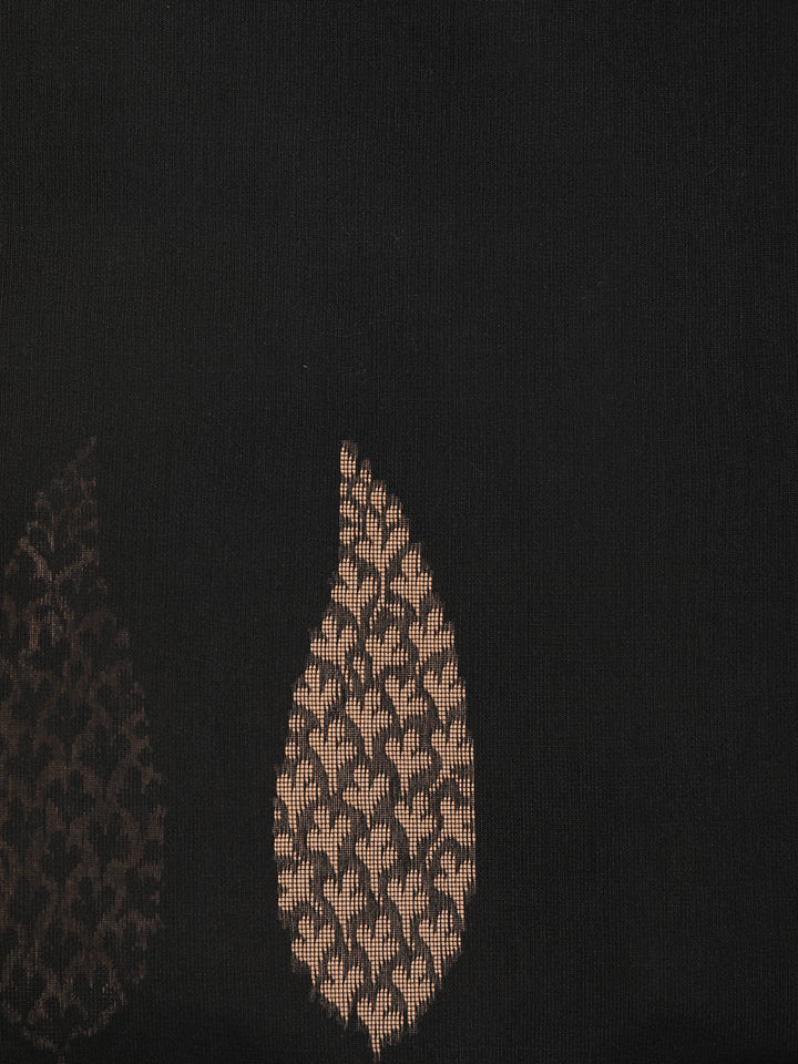 Radiate elegance and simplicity with this Black Leaf Motif Woven Cotton Saree, a timeless piece that combines grace with everyday comfort. The saree features beautifully woven leaf motifs across the body, adding a touch of subtle artistry to the deep black base. The self-woven border maintains a refined minimal look, making it an excellent choice for office wear, casual outings, or traditional events.