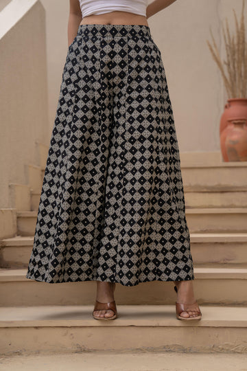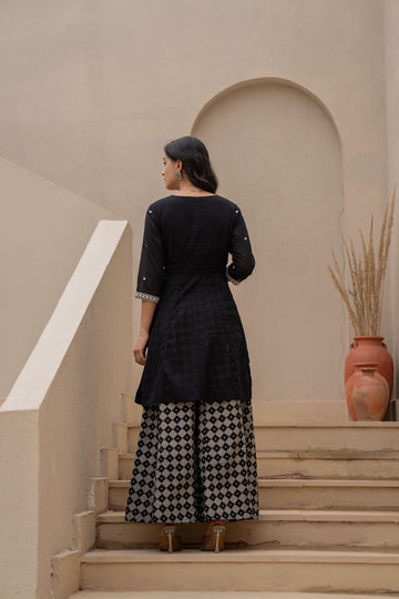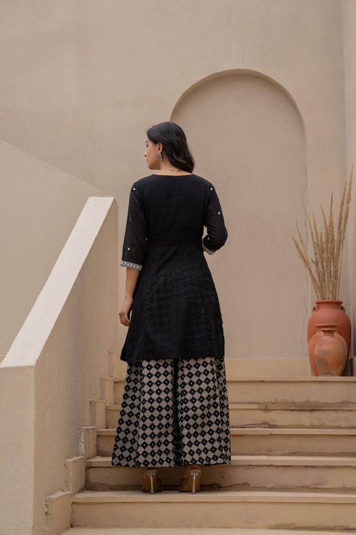 Black Mirror Work Embroidered Cotton Palazzo and Dupatta Set