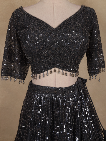 Ideal for parties, receptions, and festive evenings, this black sequin lehenga exudes glamour and poise — making it the perfect choice for those who love a touch of drama and timeless beauty.