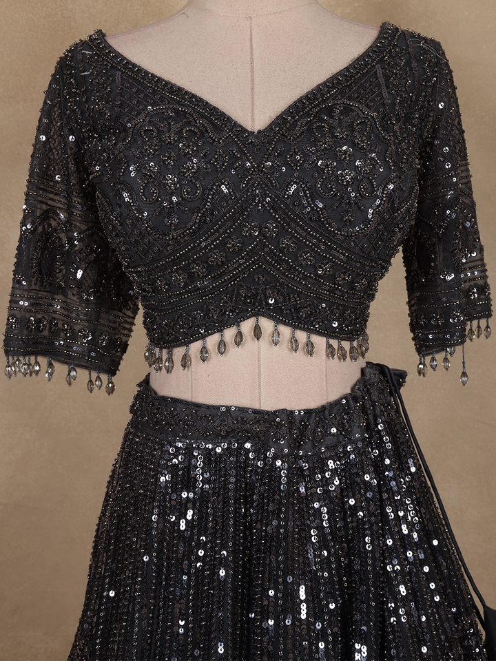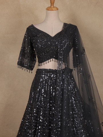 Black Sequins Embroidered Design Net Lehenga