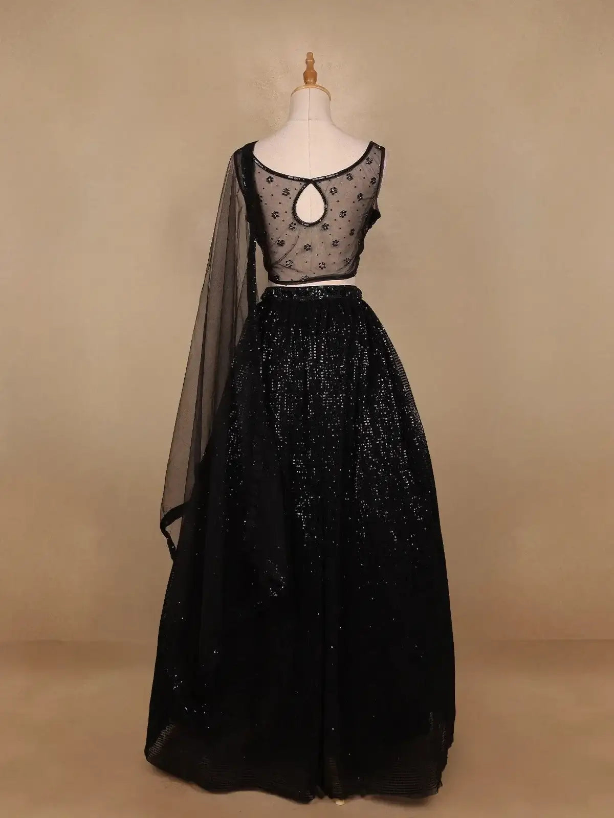 Black Sequins Embroidered Net Lehenga for Bridesmaids