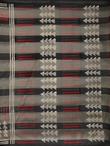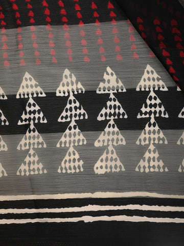 Black Solid Design Chiffon Saree with Contrast White Pattern Border