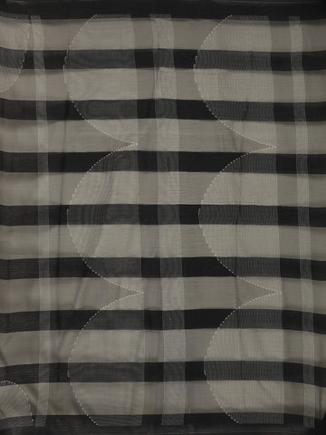 Black Solid Design Chiffon Saree with Contrast White Pattern Border