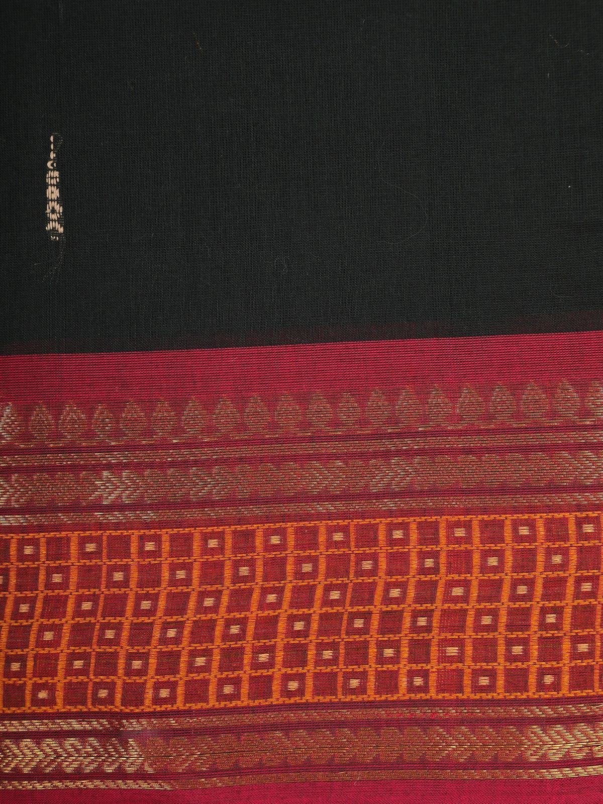 Experience the timeless elegance of handcrafted weaves with this Black Solid Design Cotton Saree. Crafted from soft and breathable cotton, this saree is designed for everyday sophistication and traditional charm. The plain black body is elevated with subtle buttas, adding a delicate hint of artistry without overwhelming the look.