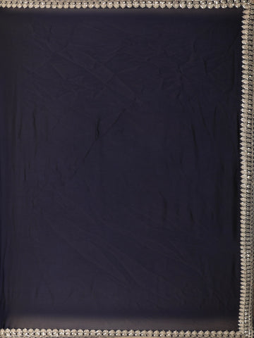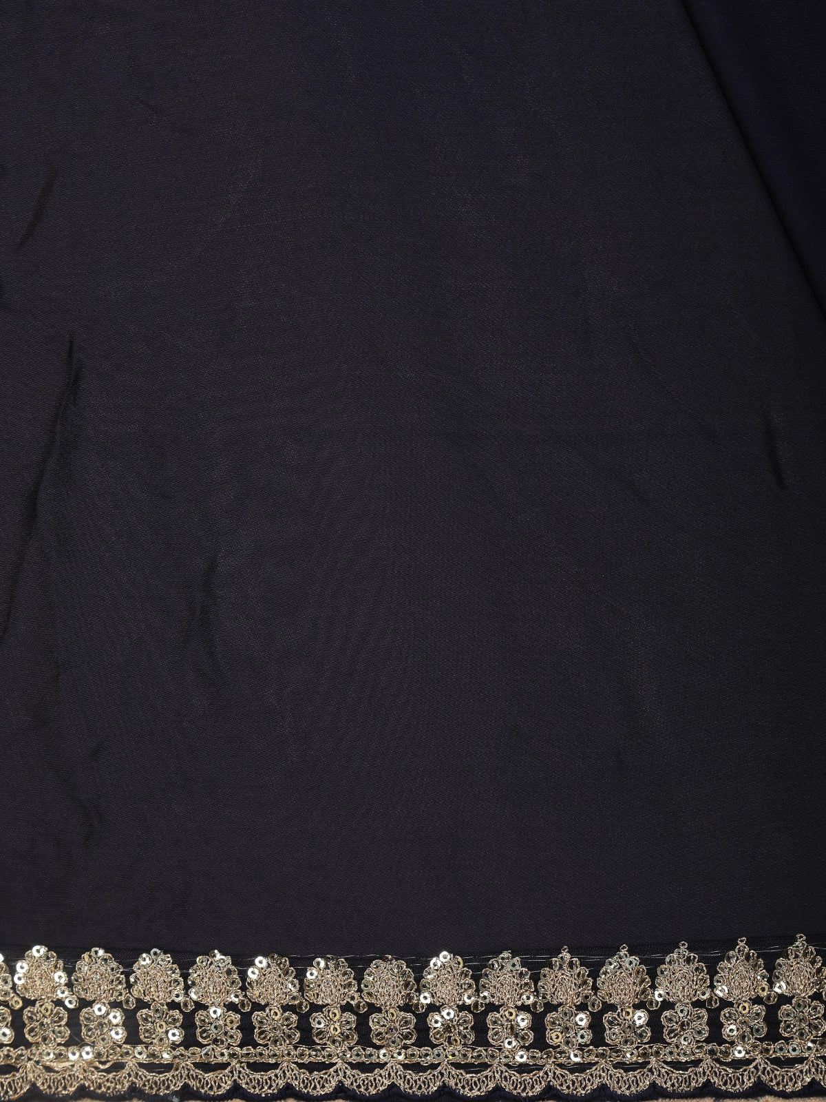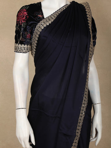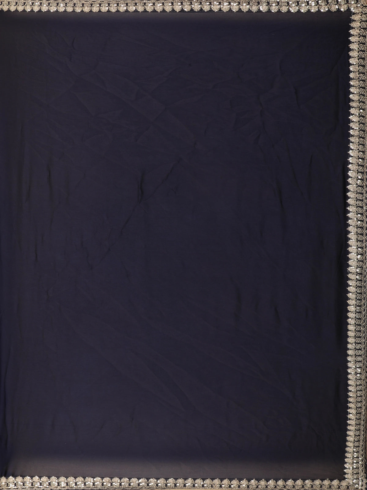 Black Solid Design Satin Saree with Embellished Lace Border