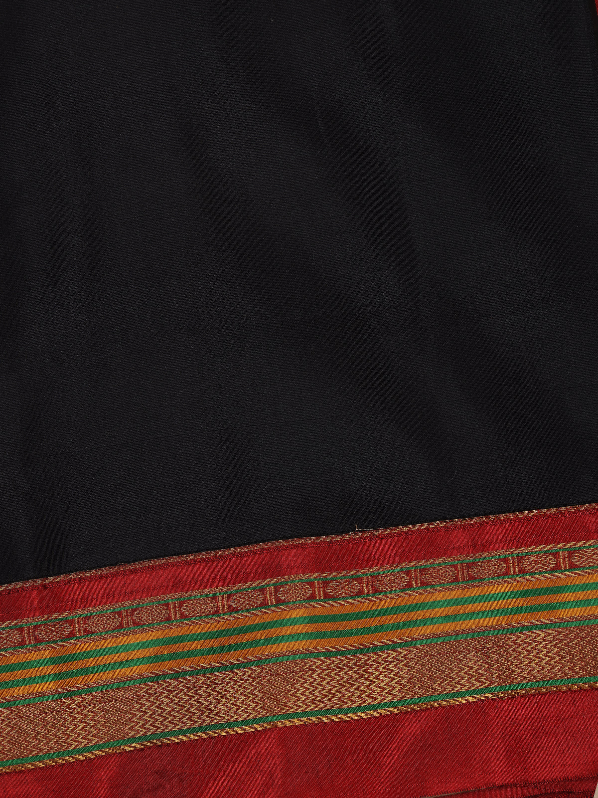 Black Solid Design Semi Silk Cotton Saree with Contrast Border