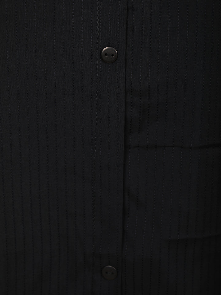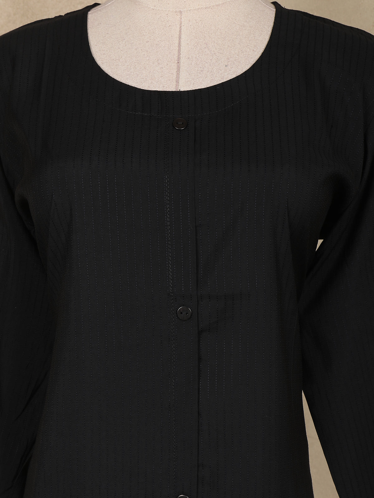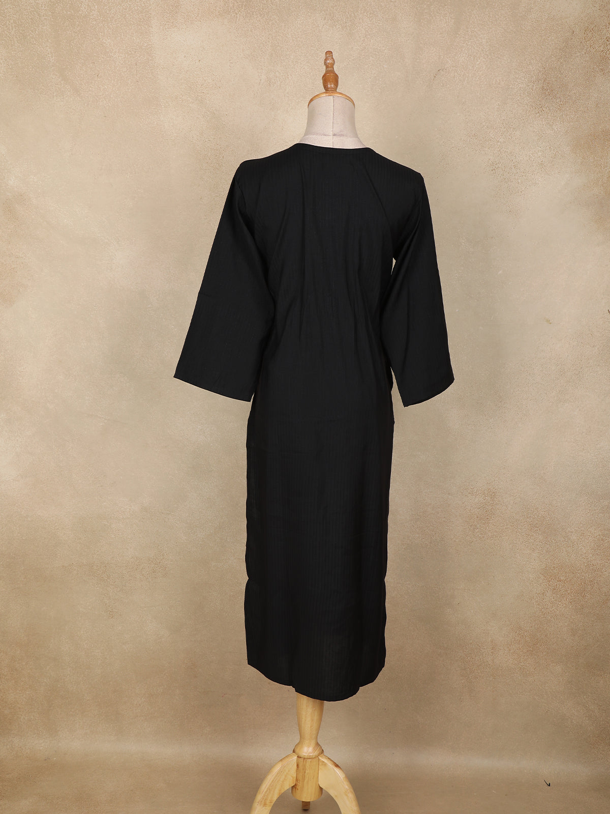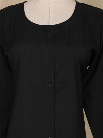 Step into effortless elegance with this Black Striped Cotton Kurti, designed for women who love comfort blended with minimal chic. Crafted from soft and breathable cotton fabric, this kurti features a subtle vertical stripe texture that adds a refined and elongated look to the silhouette.