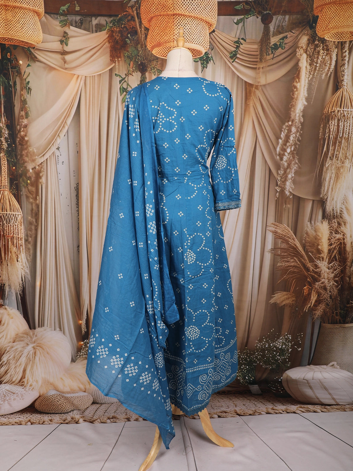 Blue Bandhani Printed Cotton Salwar Suit with Dupatta
