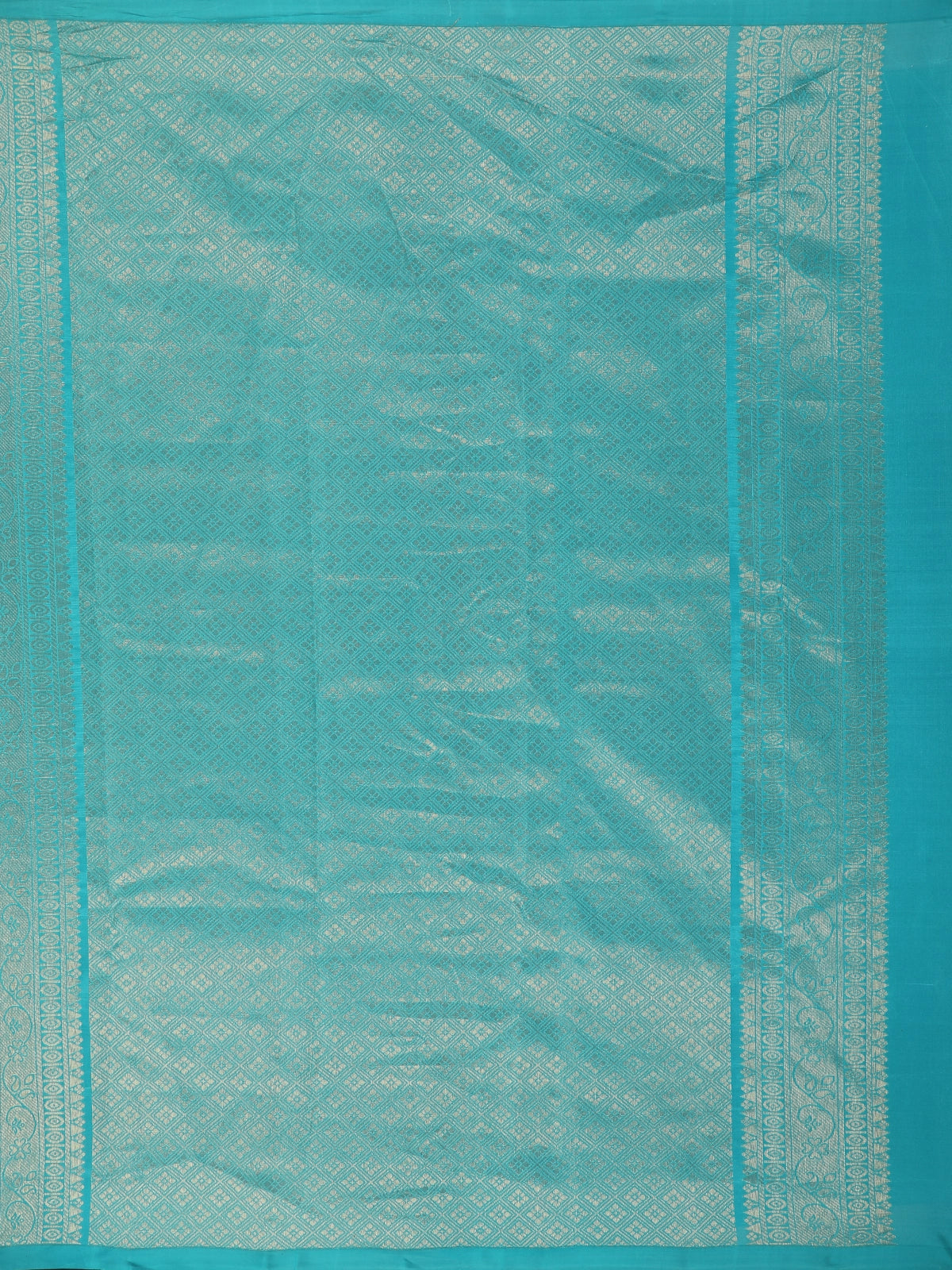 Complementing the body is a neatly finished self border, which maintains a harmonious and sophisticated appearance without overpowering the design. The soft silk fabric ensures lightweight comfort while retaining a rich, festive feel, making it ideal for long hours of wear.