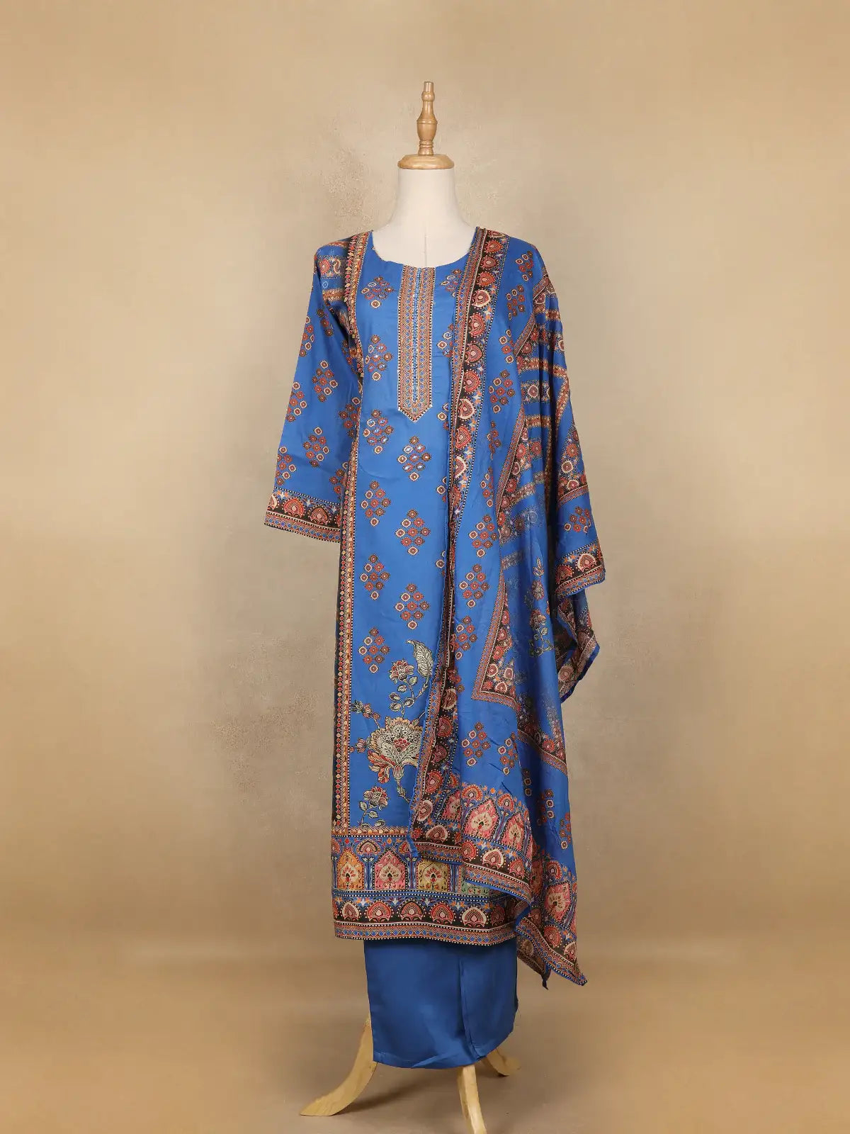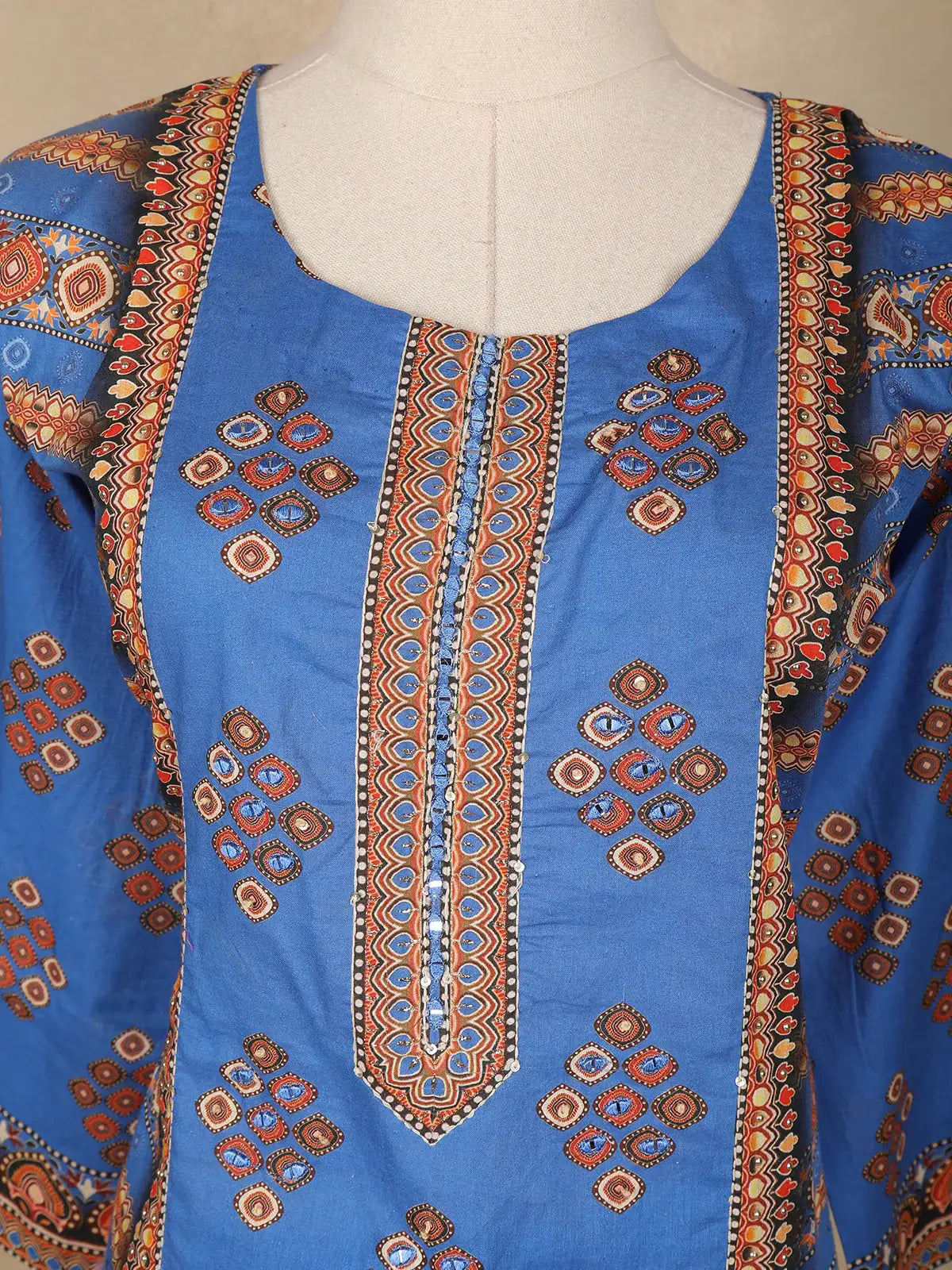 Blue Diamond Printed Cotton Salwar Suit with Dupatta