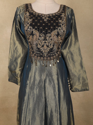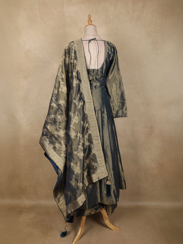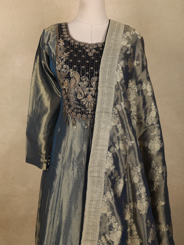 Blue Floral Embroidered Tissue Silk Palazzo Suit with Dupatta