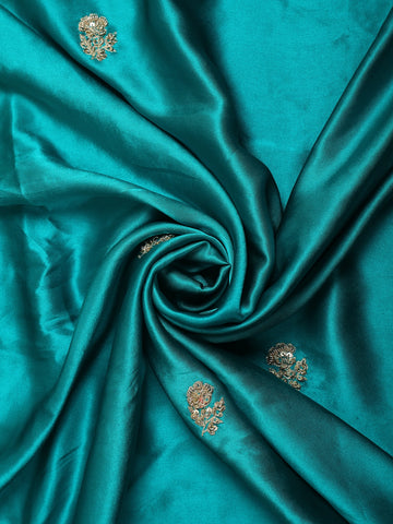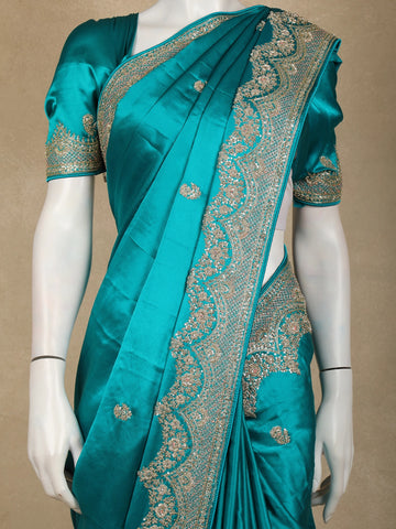 Make a striking statement in this Blue Satin Designer Saree, crafted to embody opulence and timeless glamour. The luxurious satin fabric offers a smooth, fluid drape with a rich sheen, enhancing the bold blue that exudes confidence and festive grandeur.
