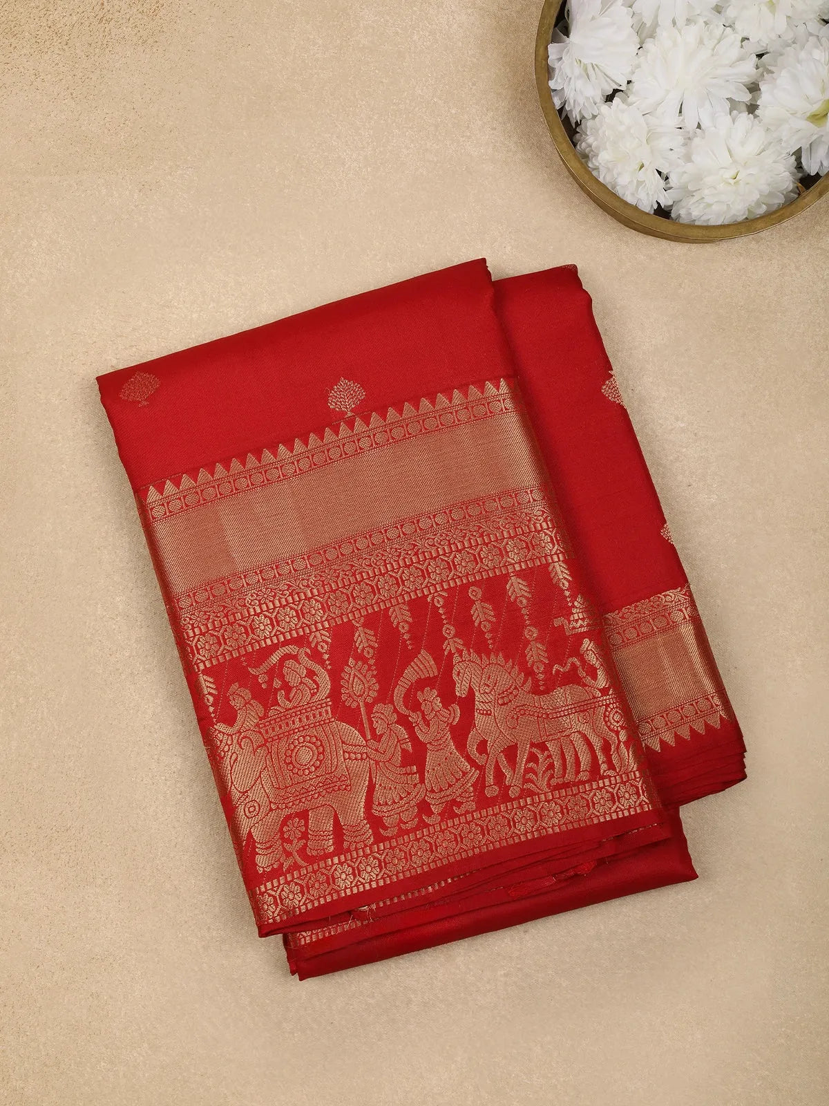 Whether you're attending a festive celebration, wedding event, or a cultural function, this saree ensures you exude charm, elegance, and a touch of bold ethnic flair.