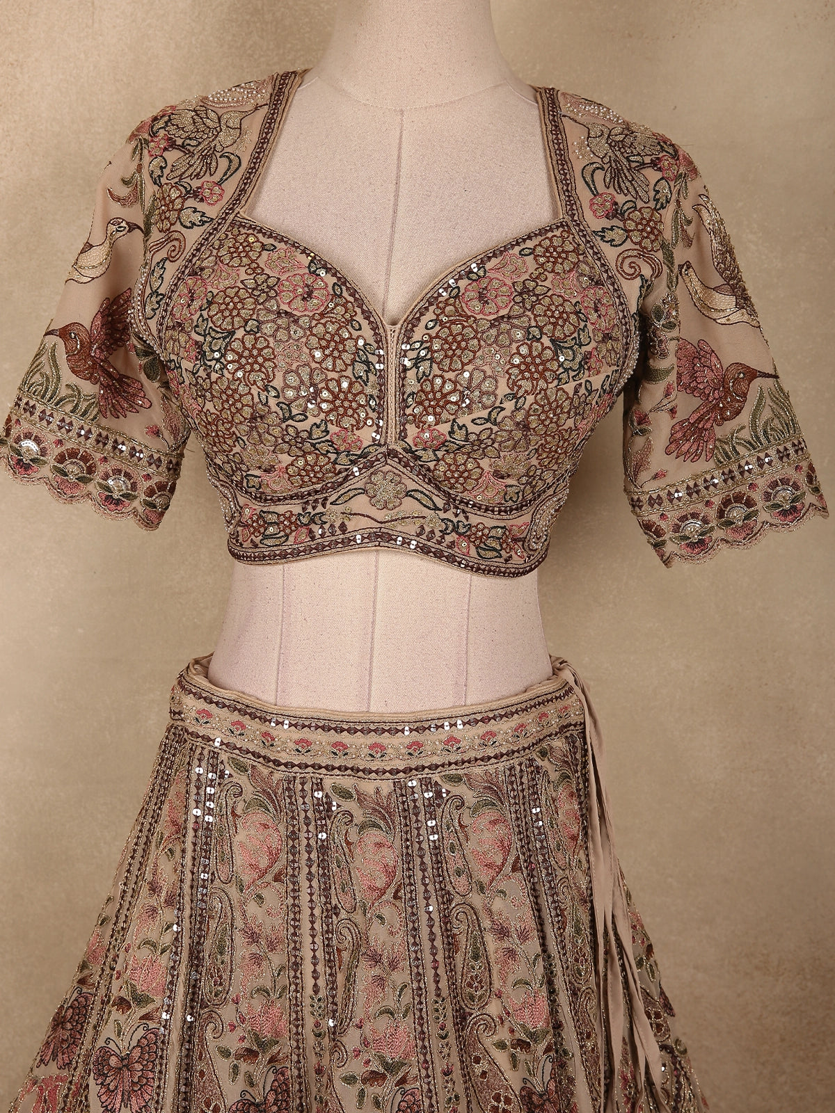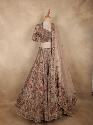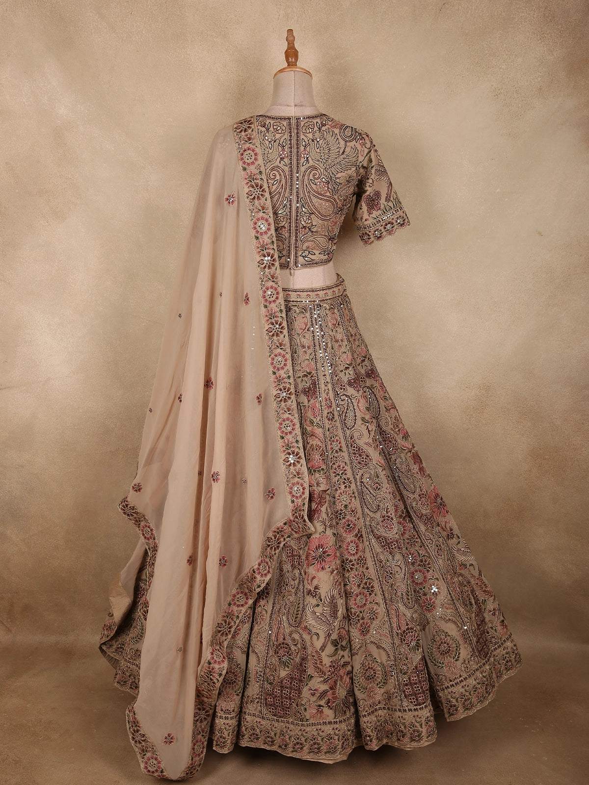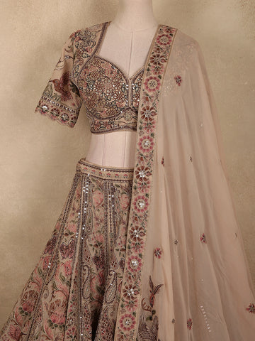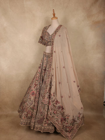 Blush Beige Floral Thread Embroidered Design Silk Lehenga With Dupatta