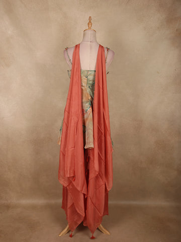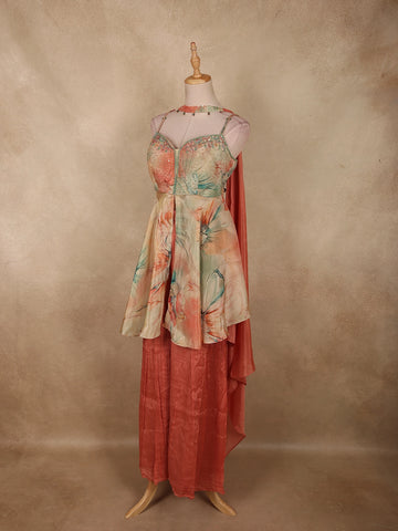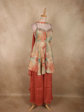 Blush Peach Abstract Printed Design Crepe Palazzo Suit with Dupatta