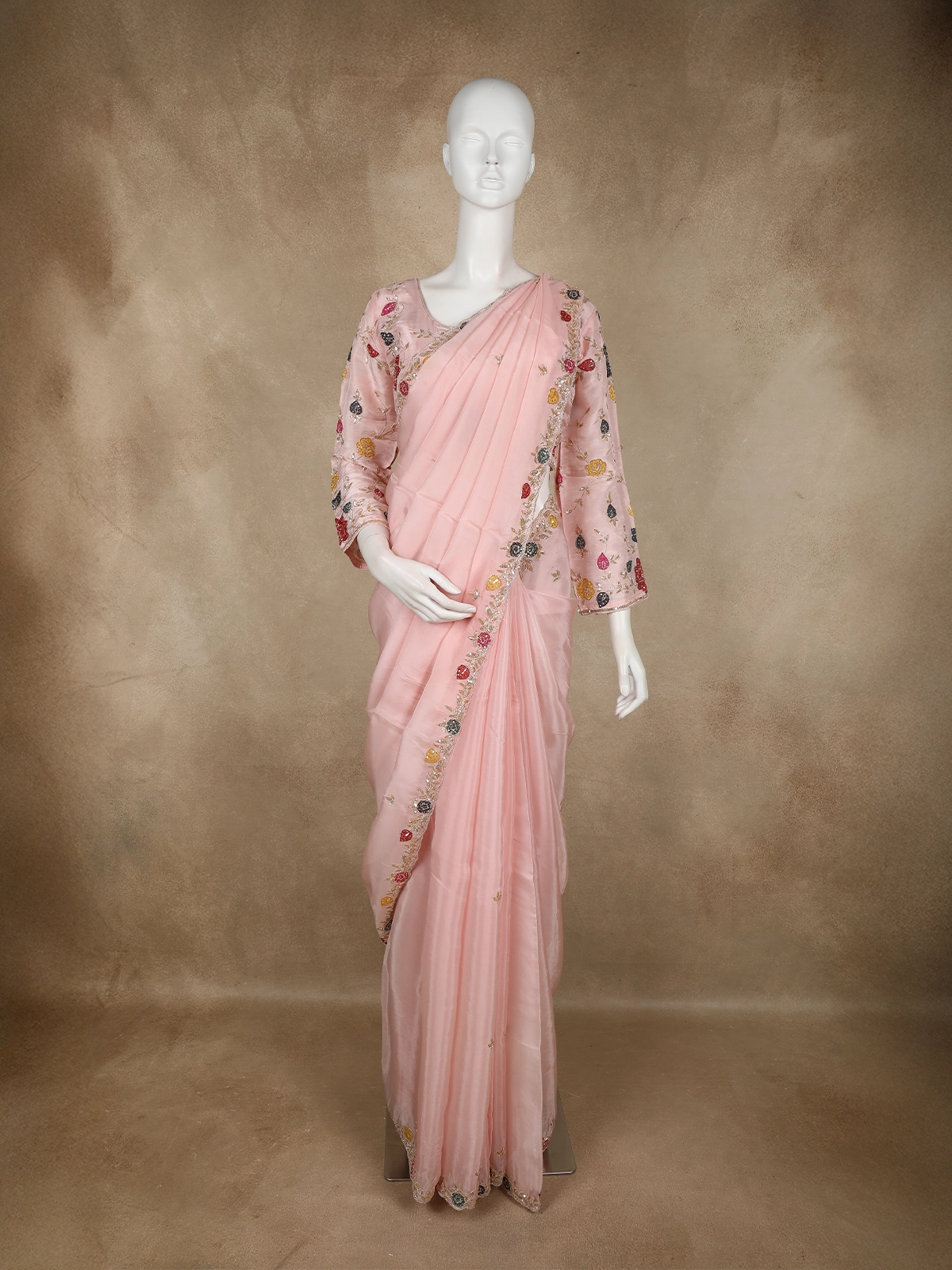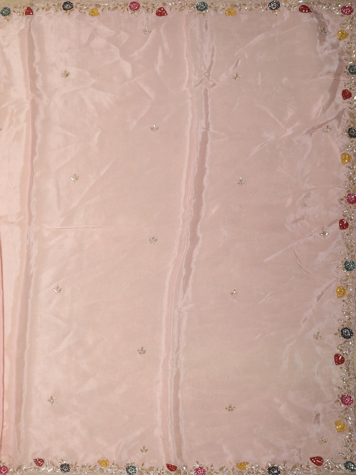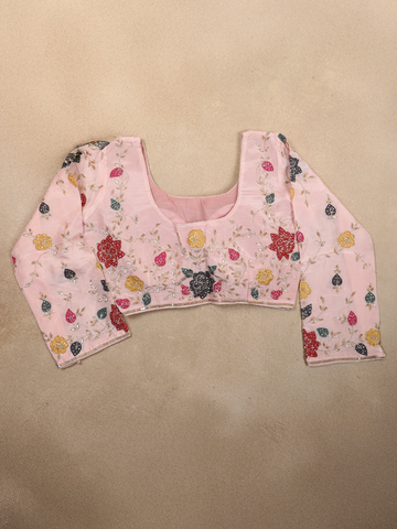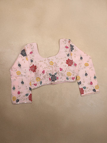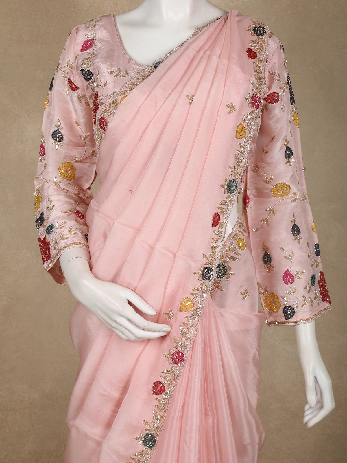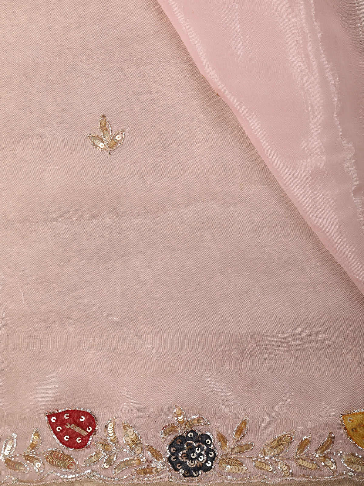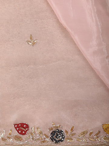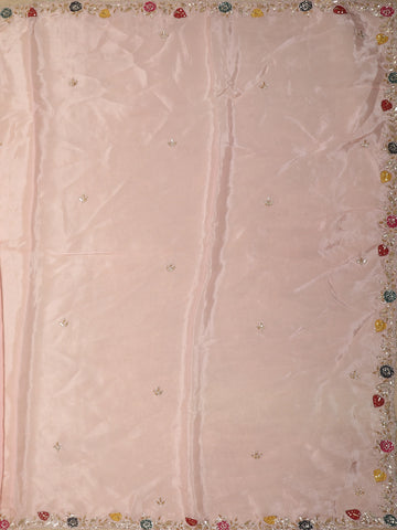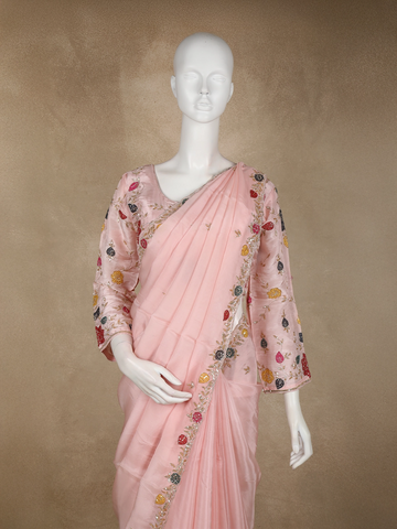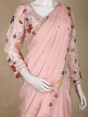 Blush Peach Floral Sequins Embroidered Design Satin Designer Saree with Blouse