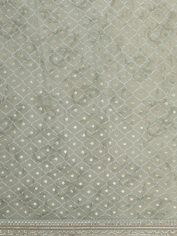 Paired with a coordinated mint green blouse featuring matching embellishments, this saree is ideal for engagements, receptions, daytime weddings, festive occasions, and elegant party wear. Style it with delicate jewellery, soft curls, and minimal makeup for a graceful, modern look.