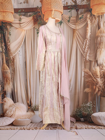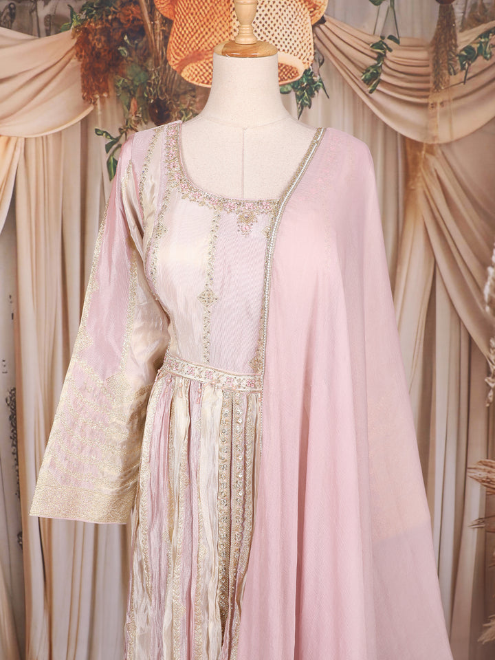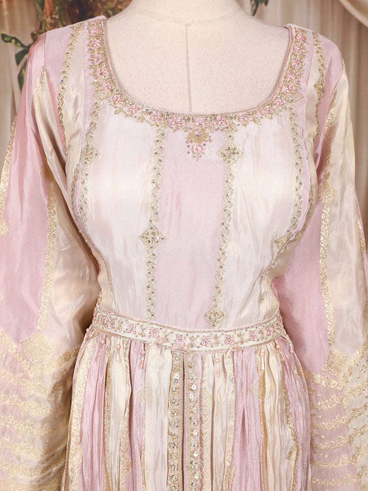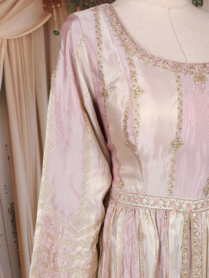 Blush Pink Floral Embroidered Tissue Silk Salwar Suit