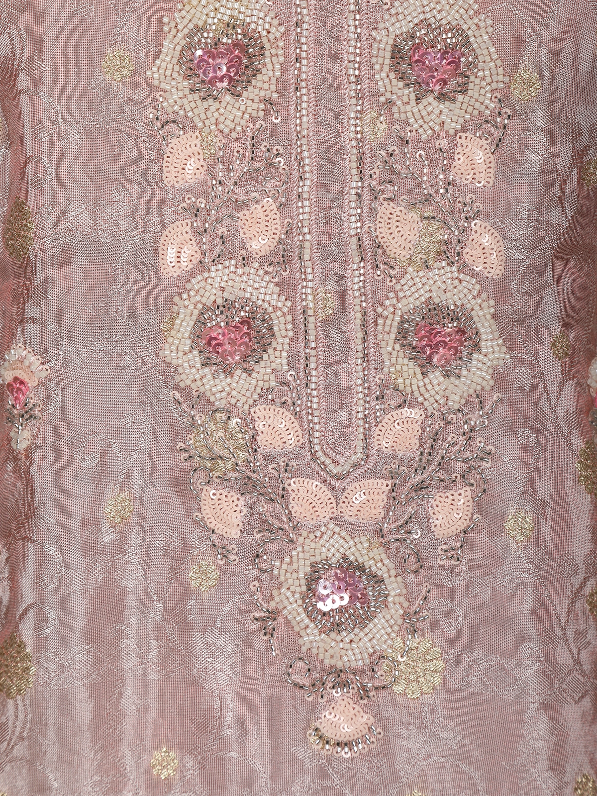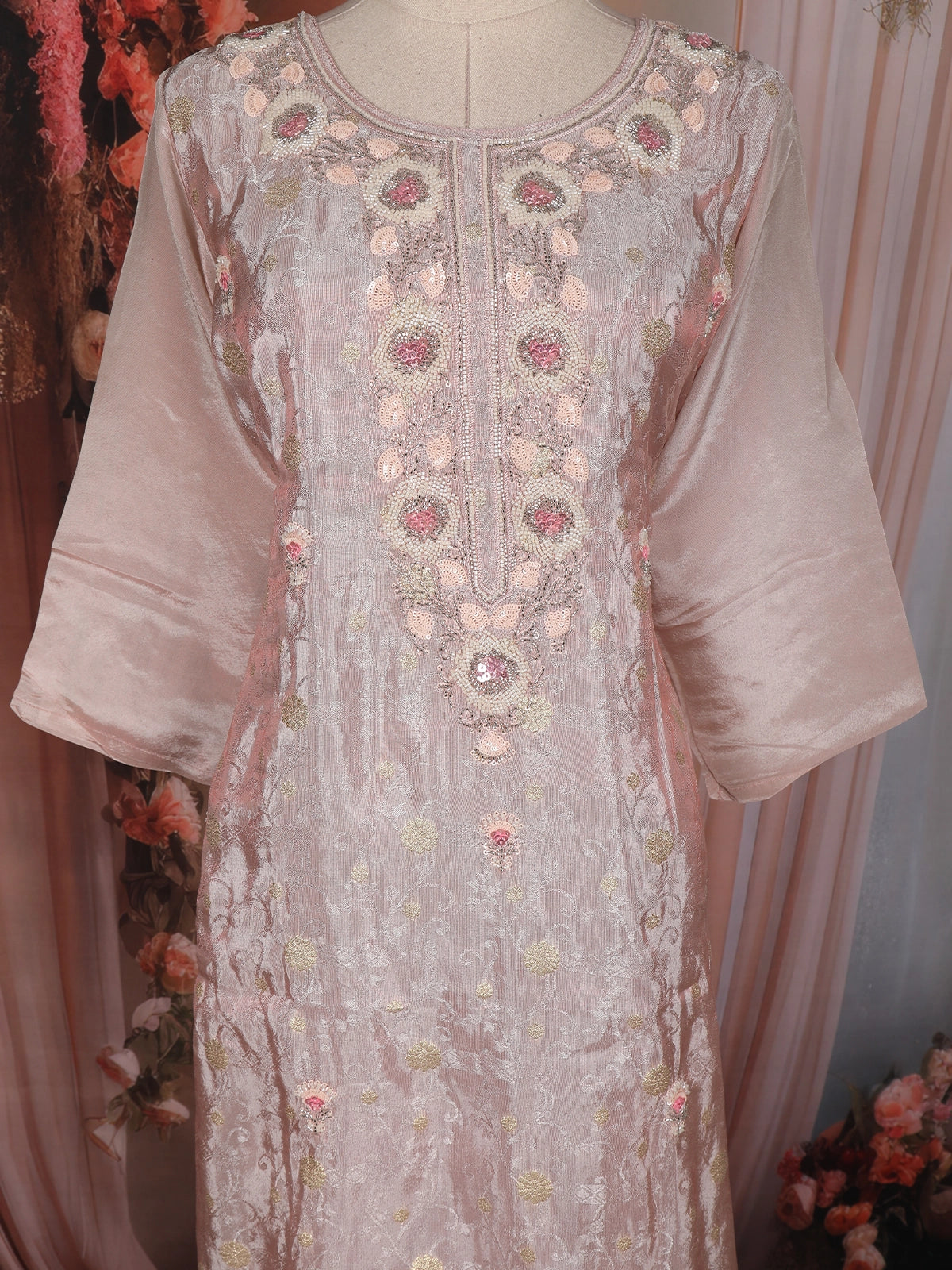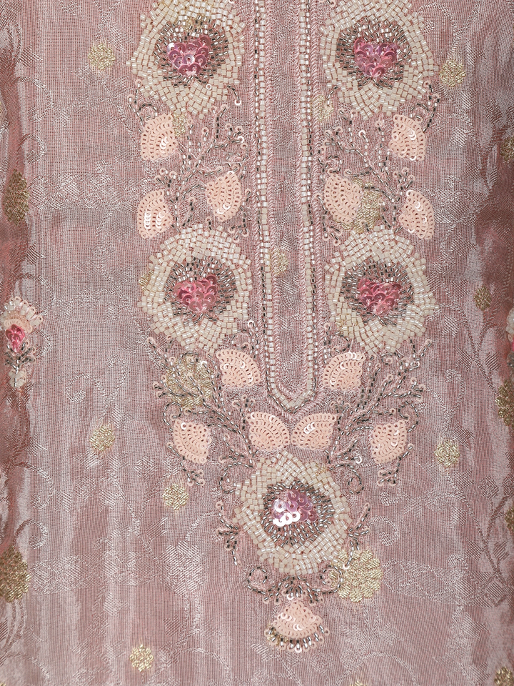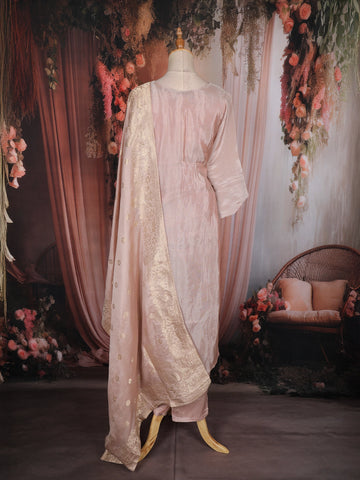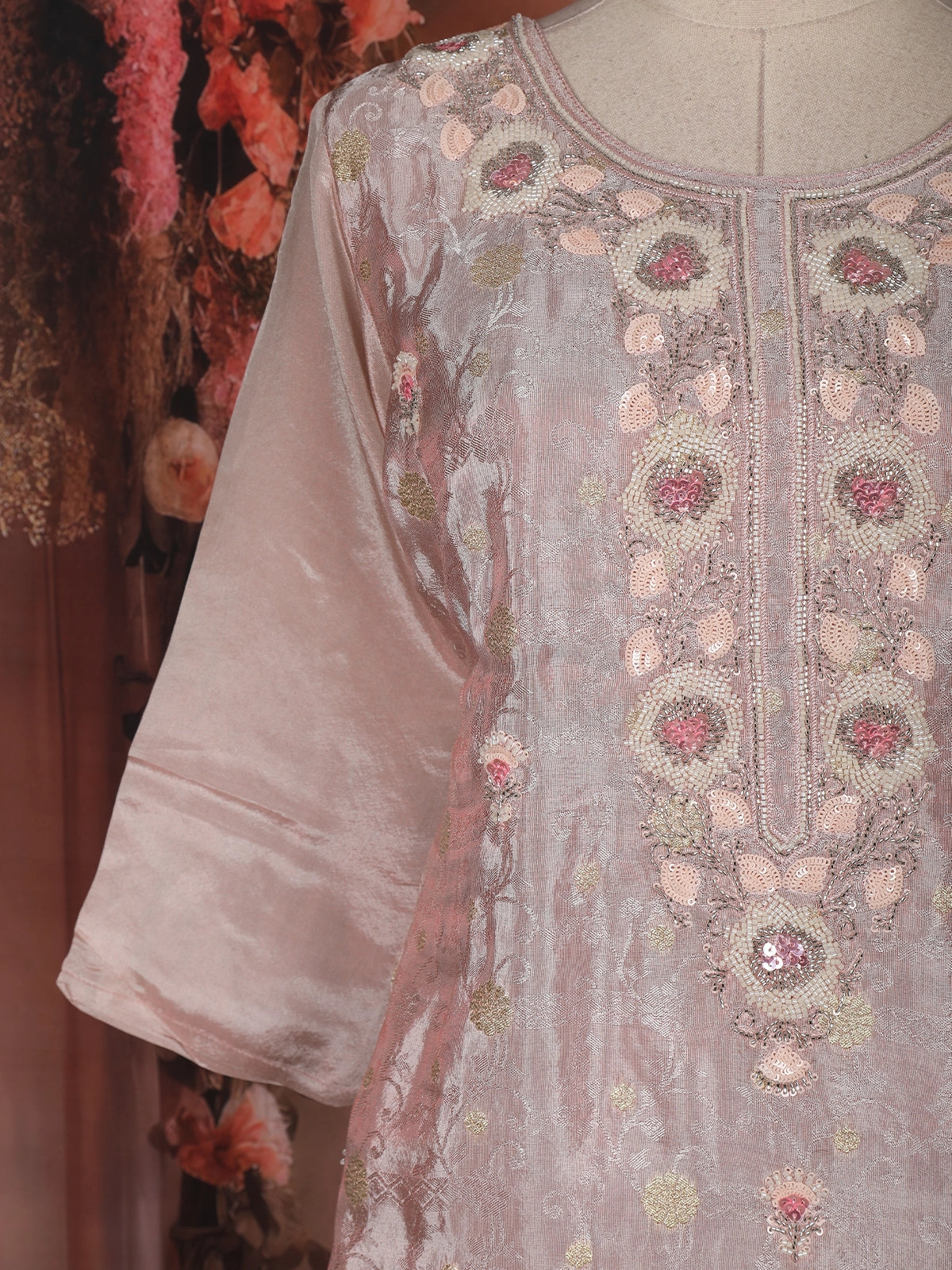 Blush Pink Floral Embroidered Tissue Silk Salwar Suit with Zari Work Dupatta