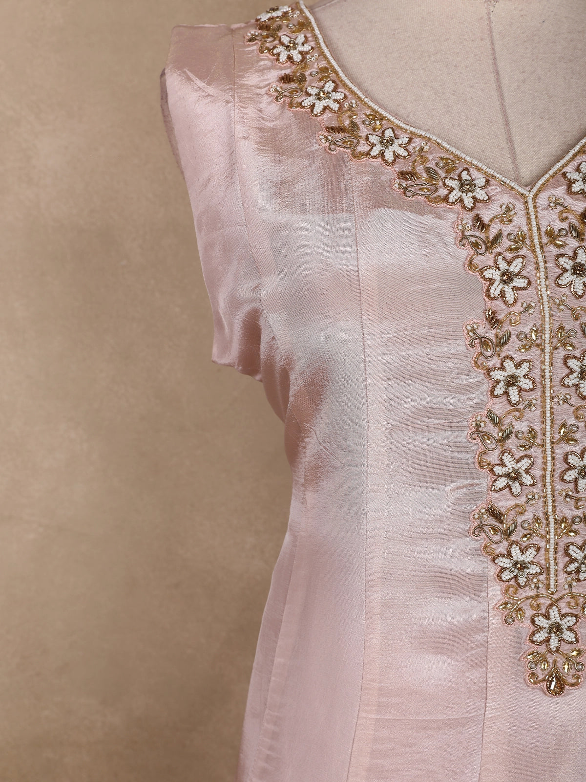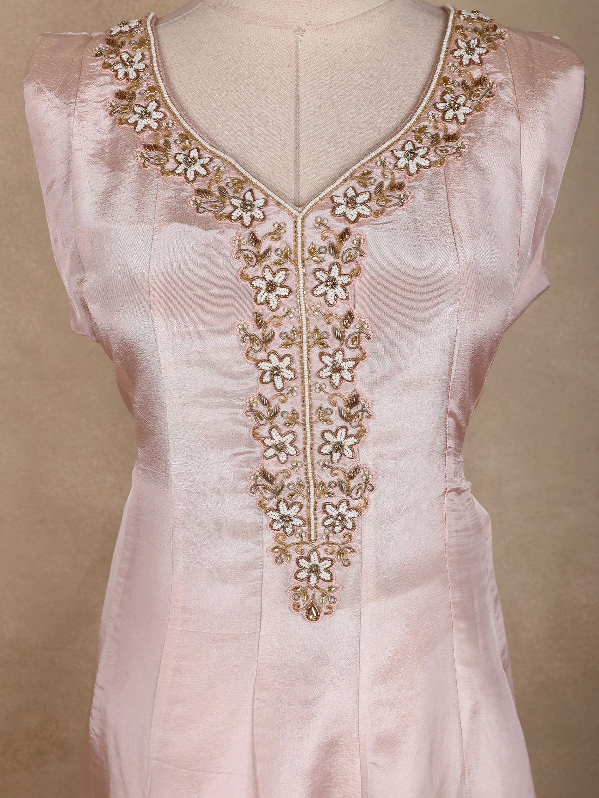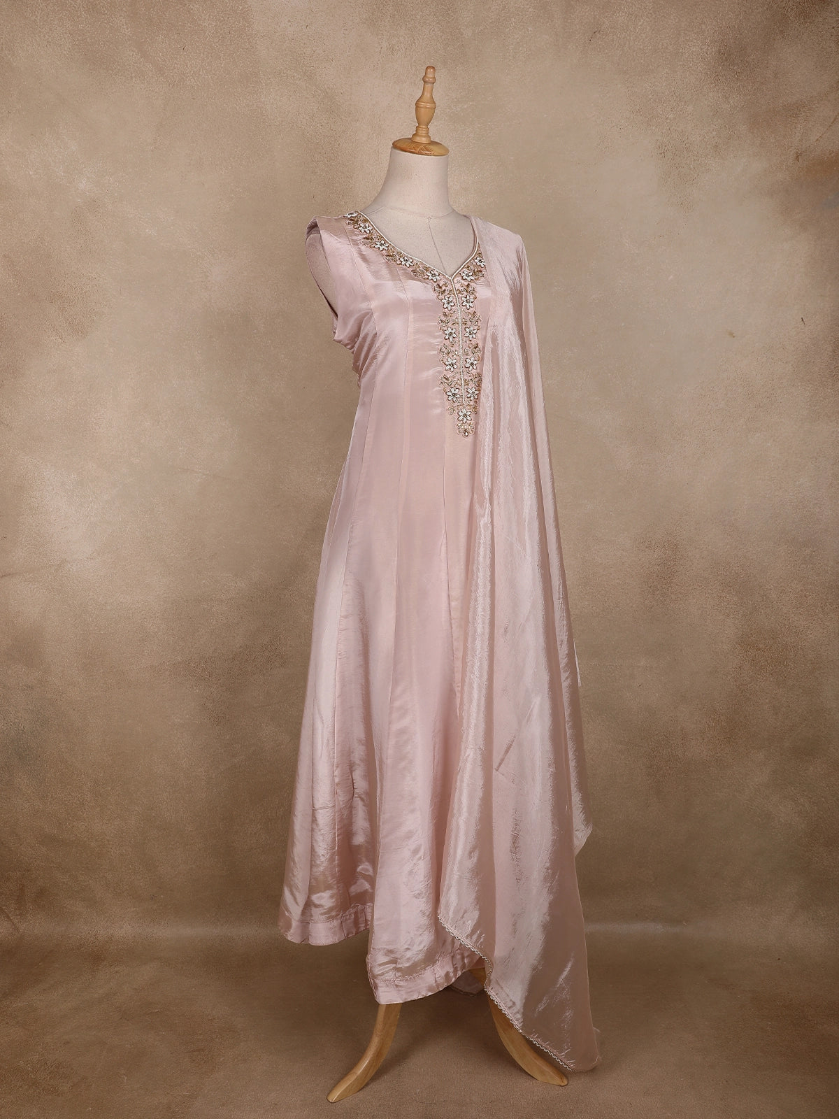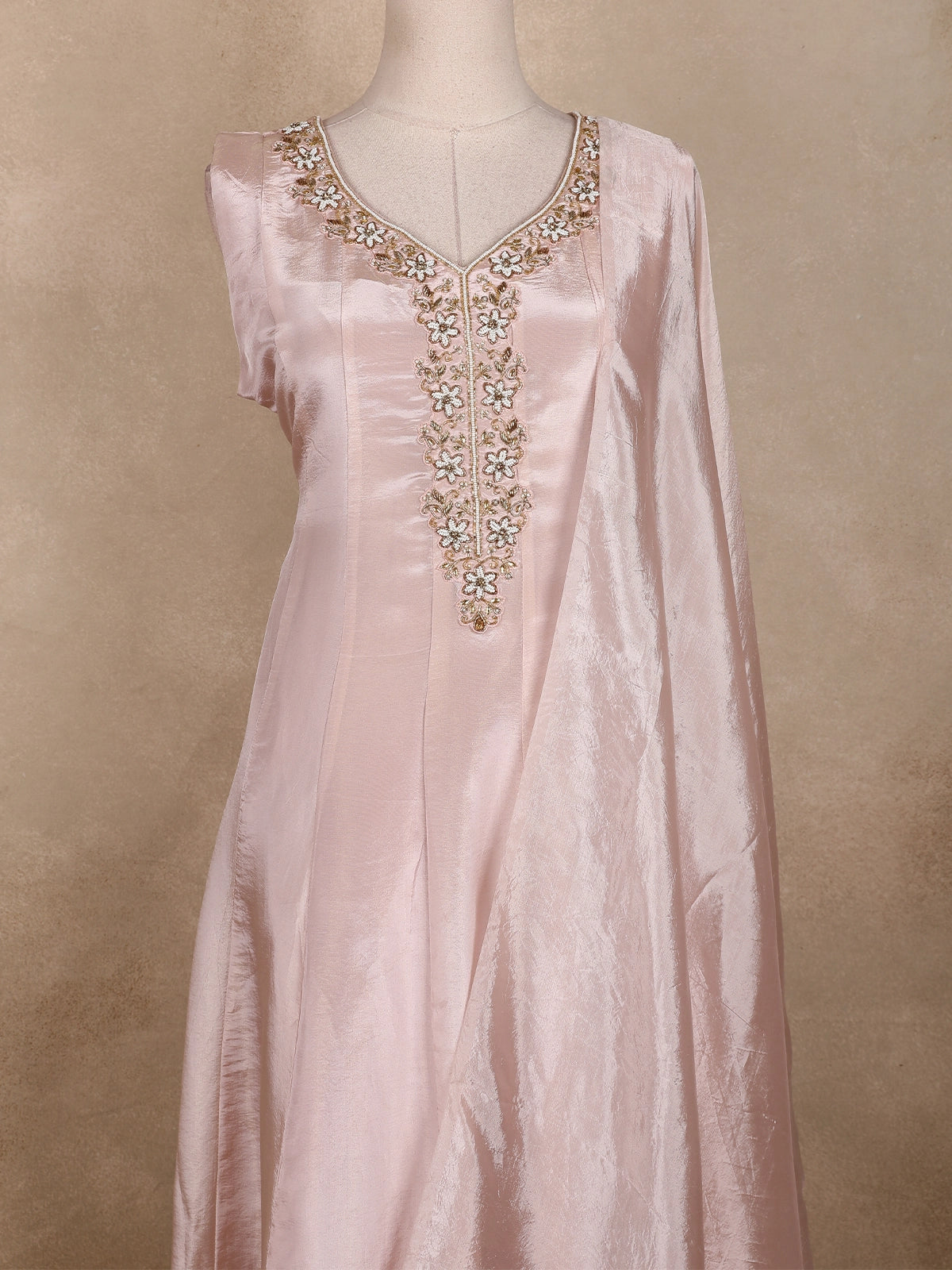 Blush Pink Floral Sequins Embroidered Design Tissue Silk Anarkali Salwar Suit
