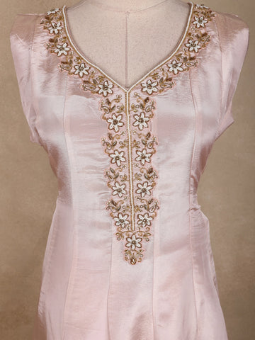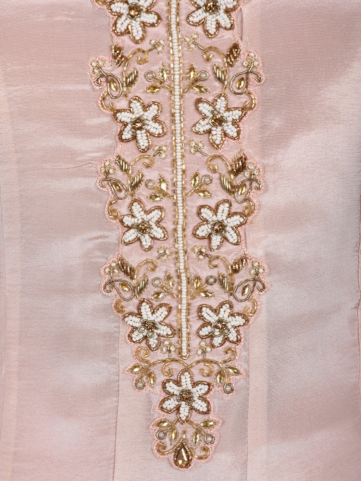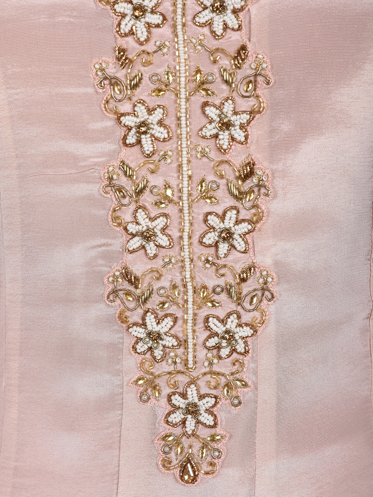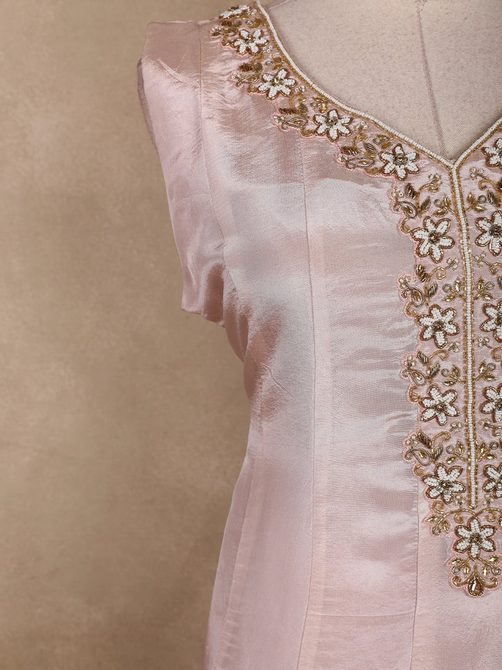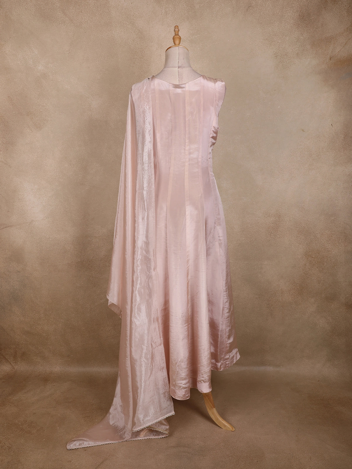 Blush Pink Floral Sequins Embroidered Design Tissue Silk Anarkali Salwar Suit