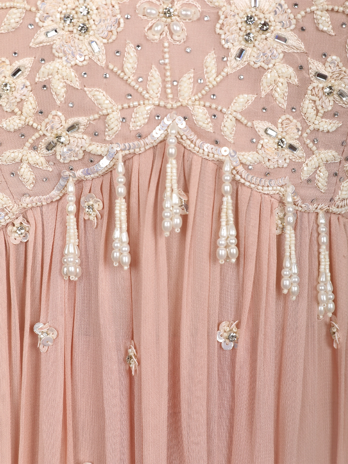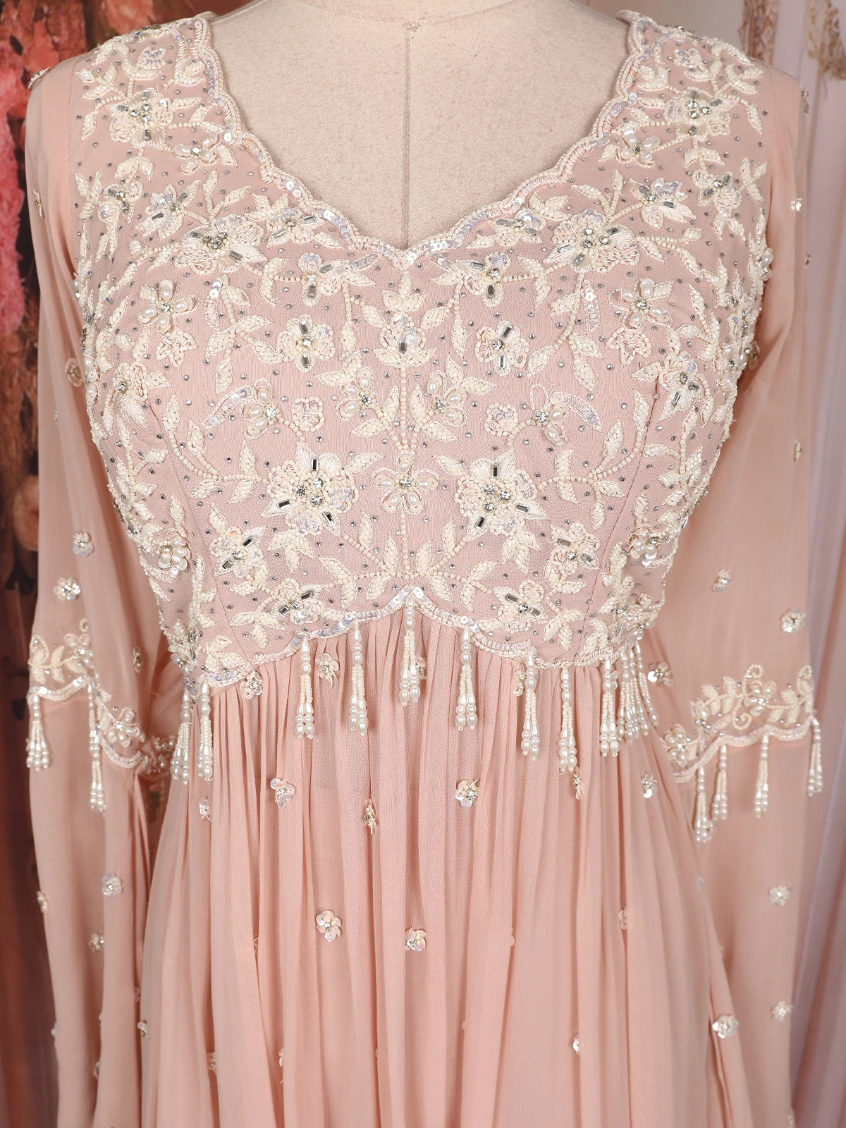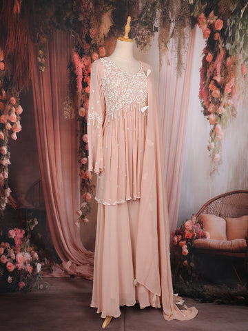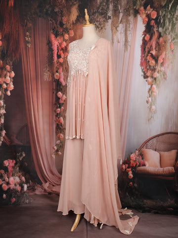 Blush Pink Floral Sequins Embroidered Georgette Palazzo Suit