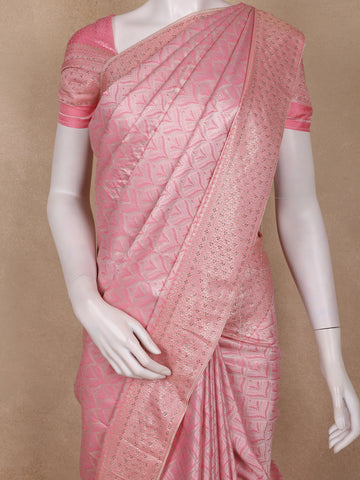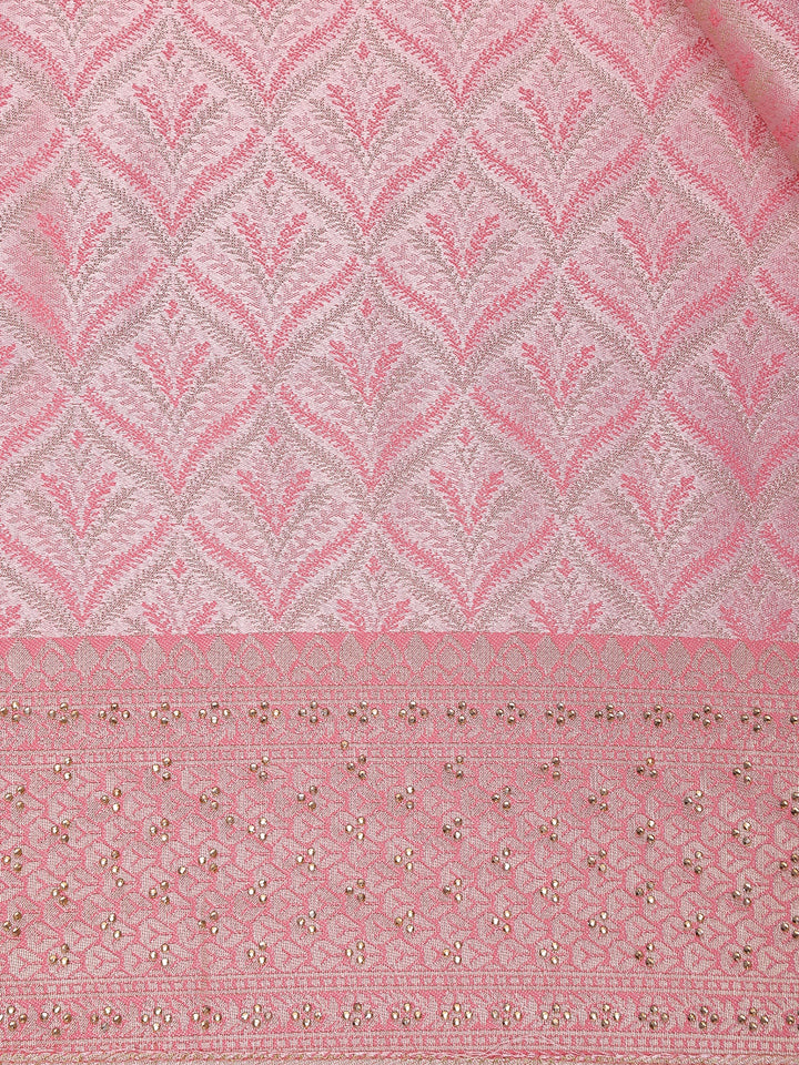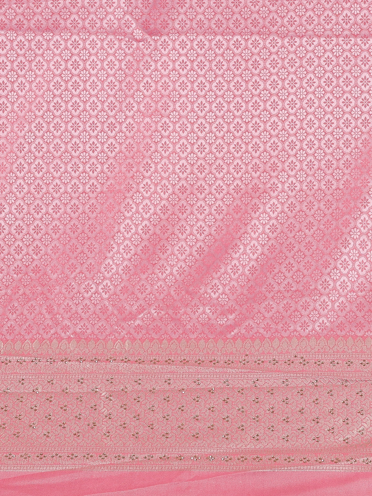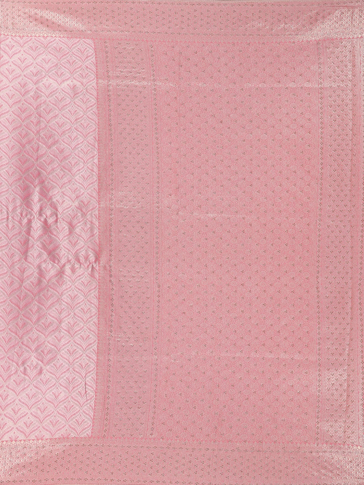 Blush Pink Leaf Motif Woven Banarasi Silk Saree With Sequin Embellished Border
