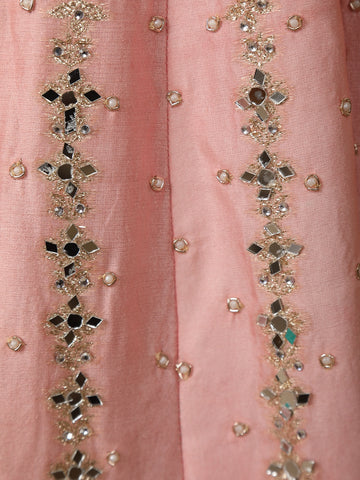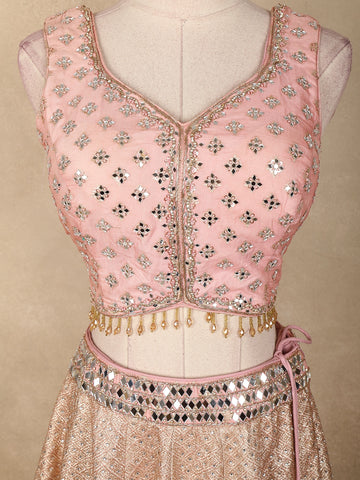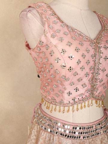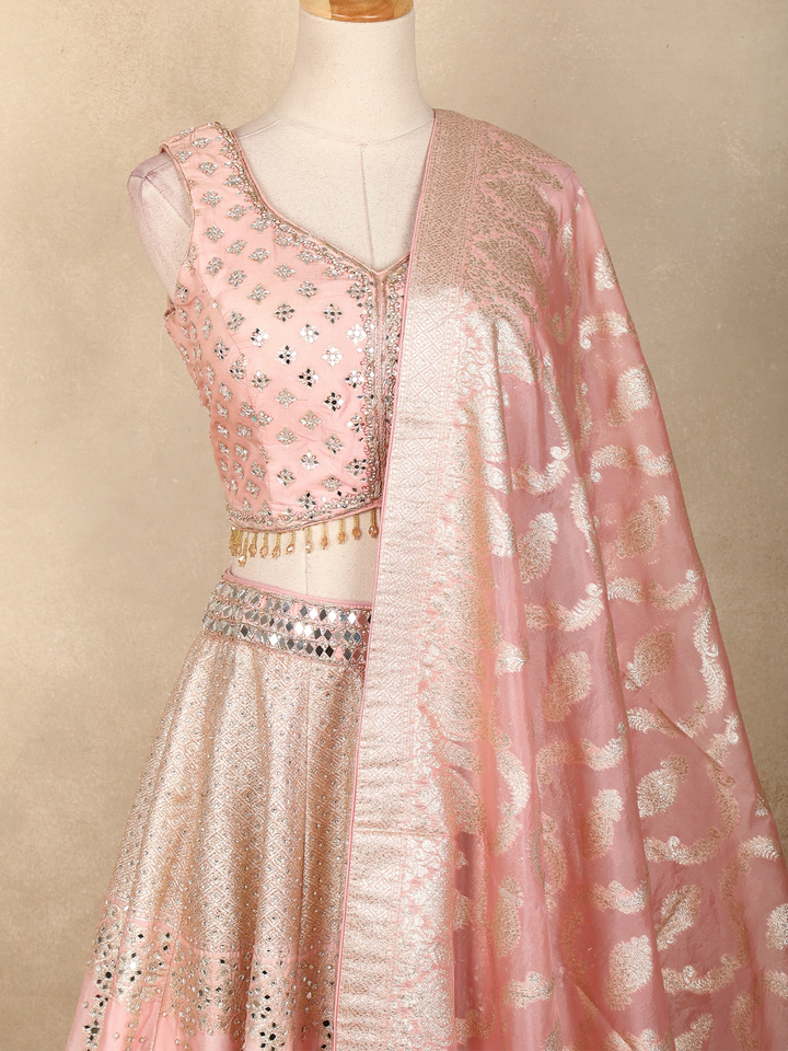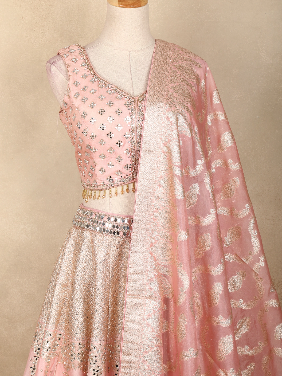 Blush Pink Mirror Work Banarasi Silk Lehenga Set with Dupatta