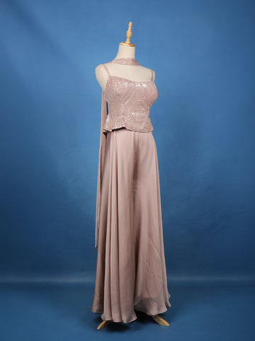 Radiate timeless elegance with this Blush Pink Sequins Embroidered Palazzo Suit, designed for women who love subtle luxury with a hint of sparkle. The sleeveless square-neck crop top is adorned with intricate sequins embroidery, arranged in a graceful pattern that adds shimmer and sophistication to the ensemble.