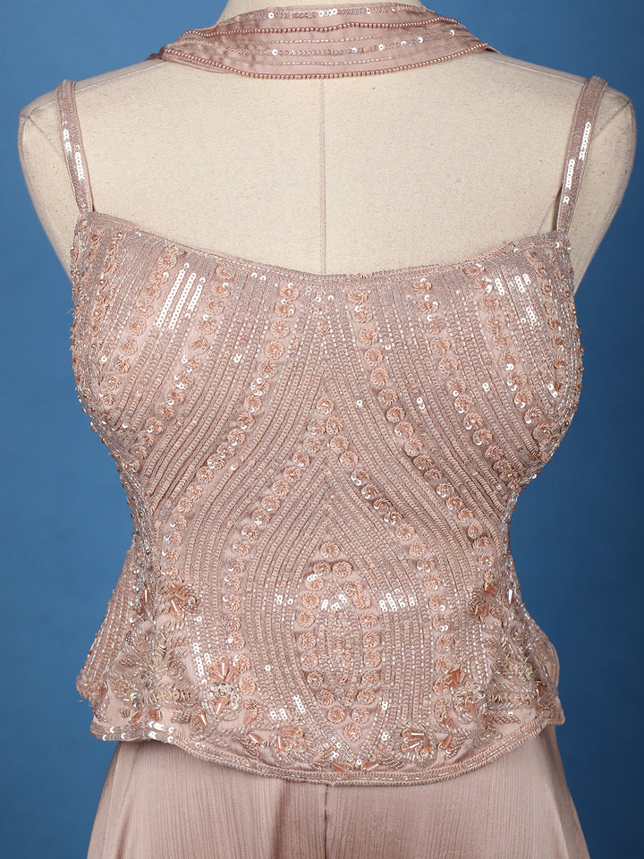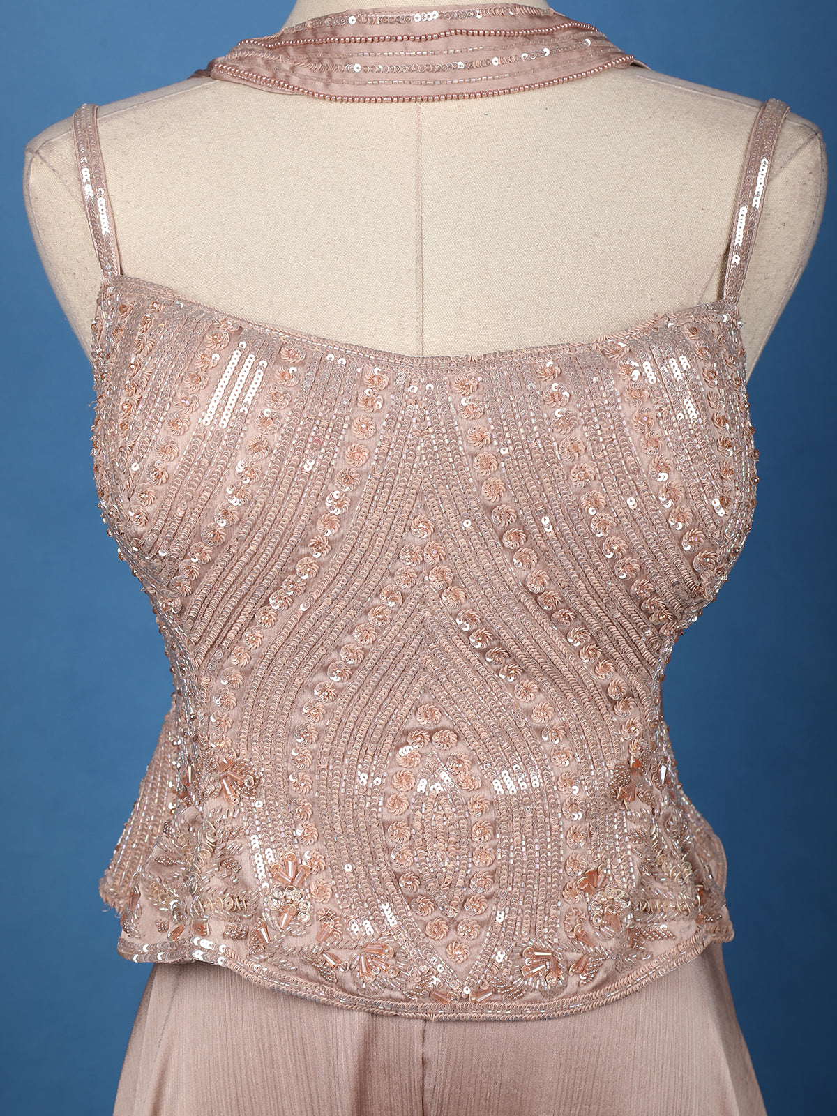 Blush Pink Sequins Embroidered Crepe Palazzo Suit